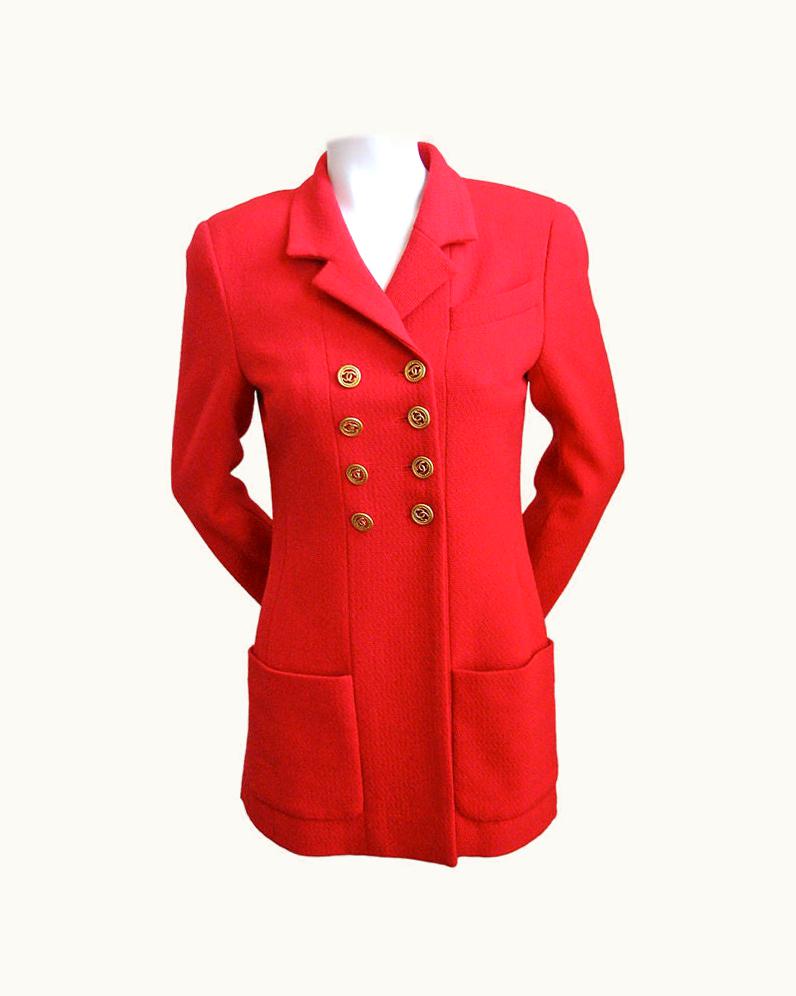 Chanel Red Structured Jacket With Cc Buttons | GLINT