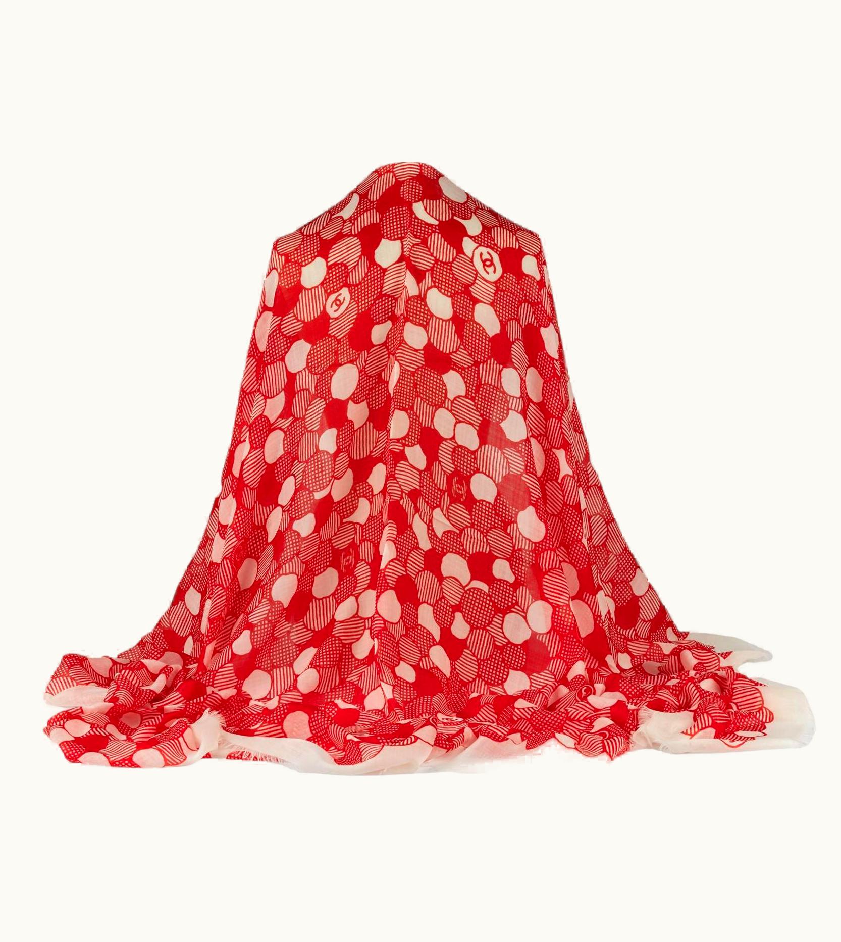 Chanel Red White Camellia Shawl | GLINT