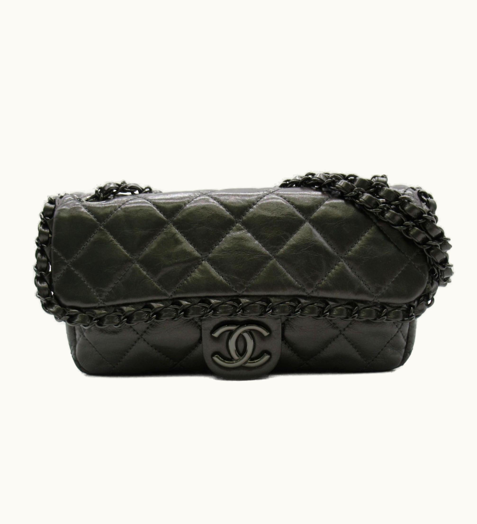 Chanel Shoulder Bag Black Metallic Black Leather | GLINT