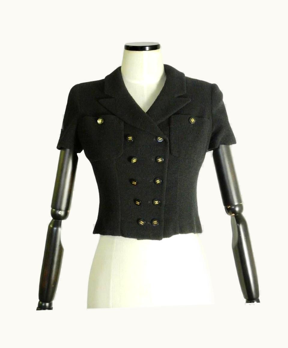 Chanel Spring 1995 Black Cropped Wool Jacket | GLINT