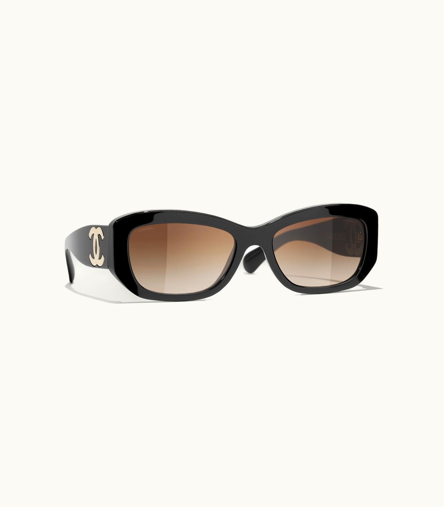 Chanel Sunglasses: Rectangle Sunglasses, Acetate Black | GLINT
