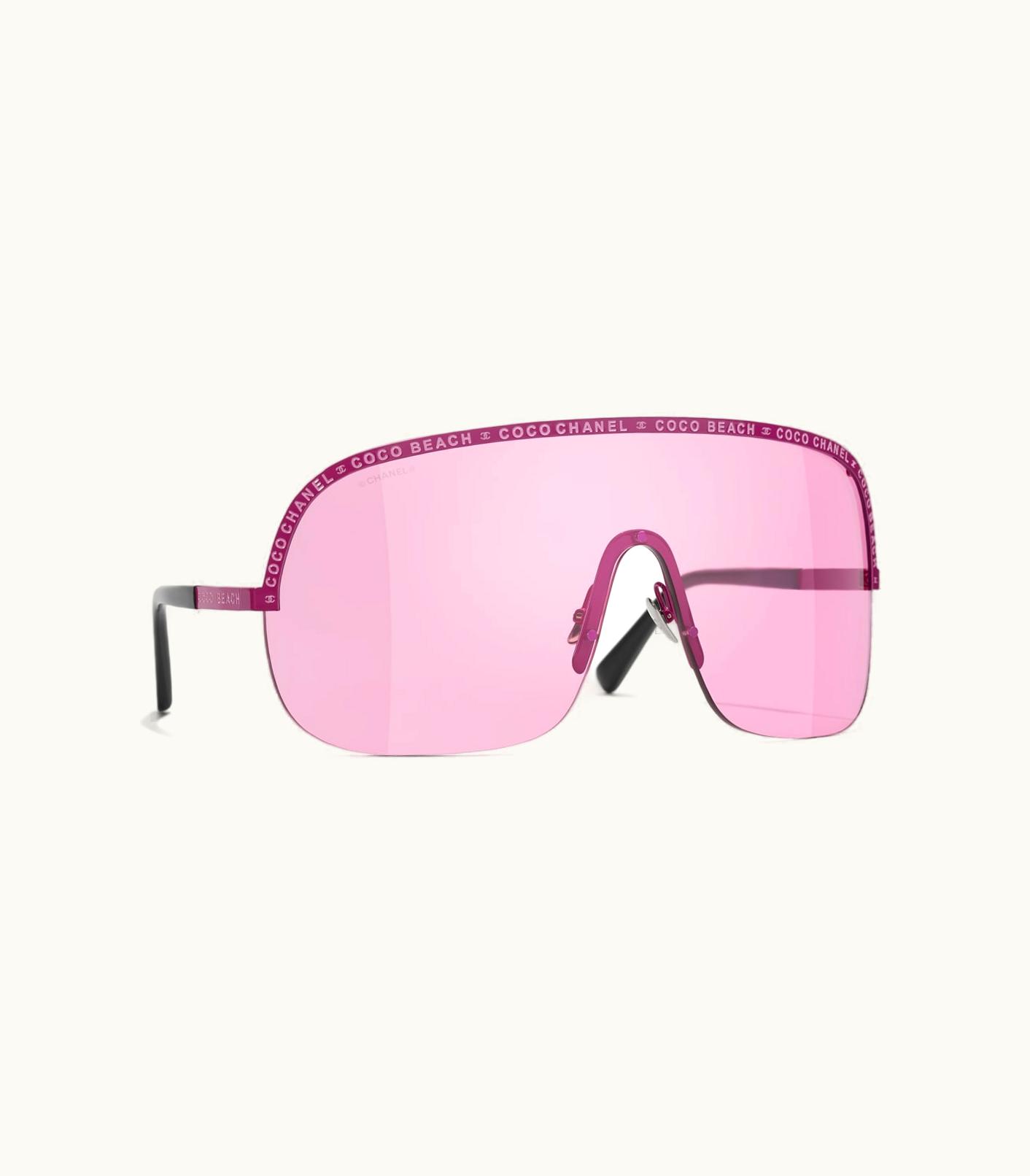 Chanel Sunglasses: Shield Sunglasses, Metal Pink & White | GLINT
