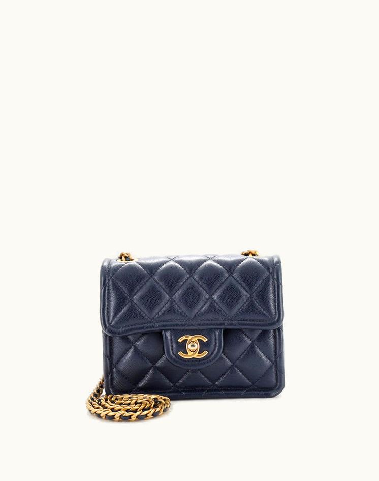 Chanel Sweet Classic Flap Bag Quilted Caviar Mini Blue Leather Gold Hardware | GLINT