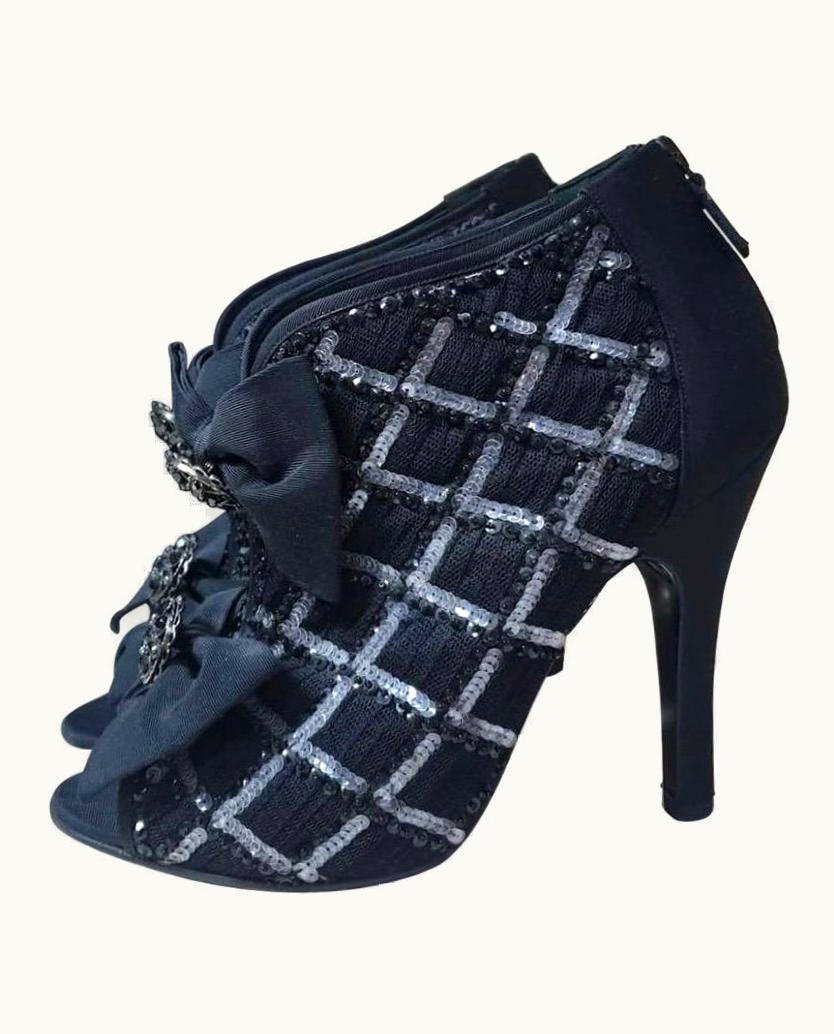 Chanel Textile Open Toe Booties | GLINT