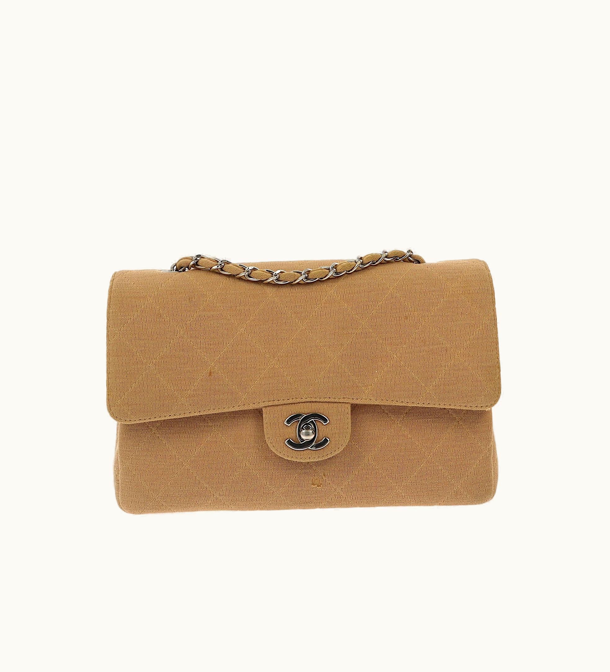 Chanel Timeless/Classique Shoulder Bag In Beige Fabric | GLINT