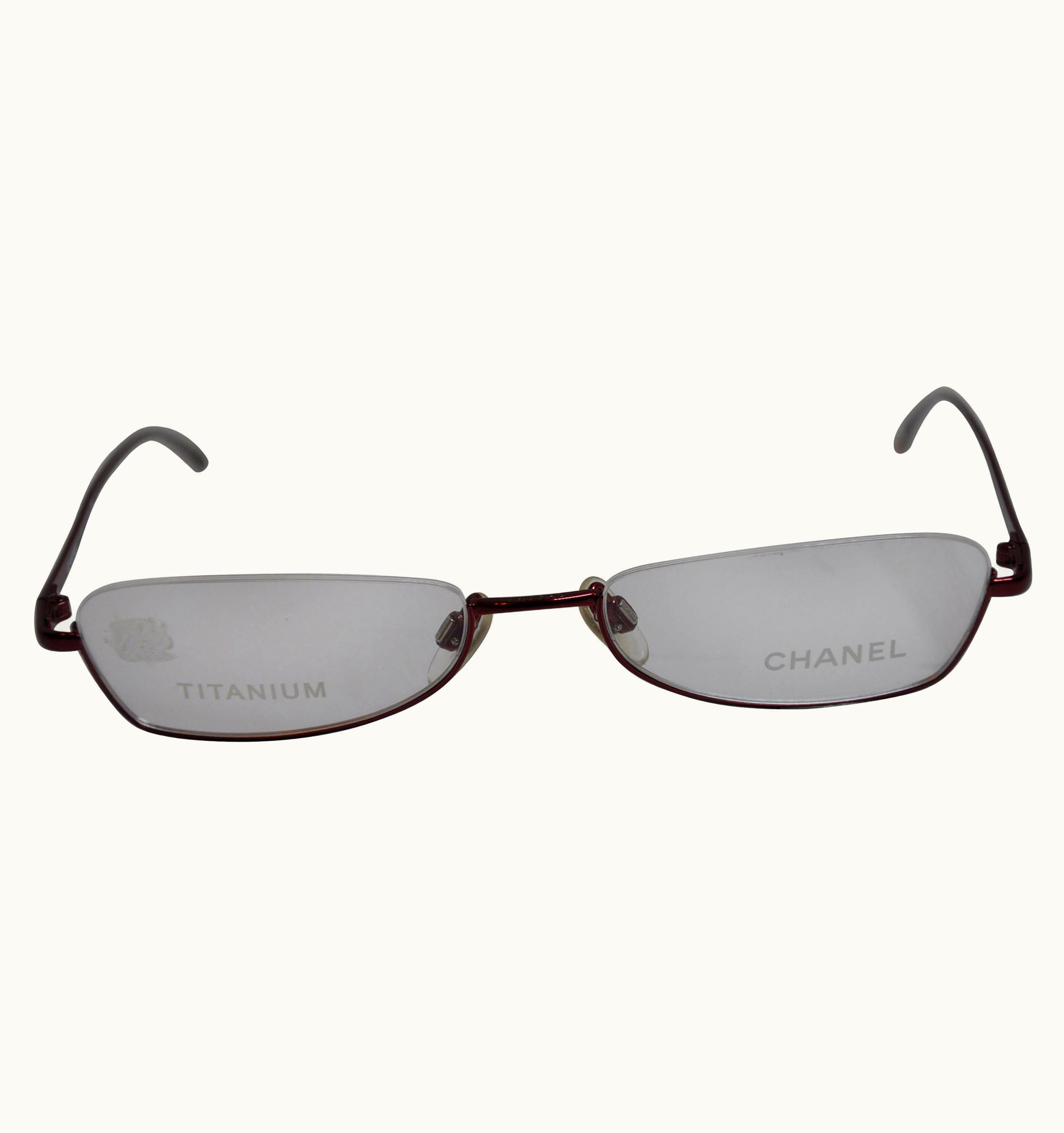 Chanel Titanium Iridescent Royal-Red Half-Frame Reading Glasses | GLINT