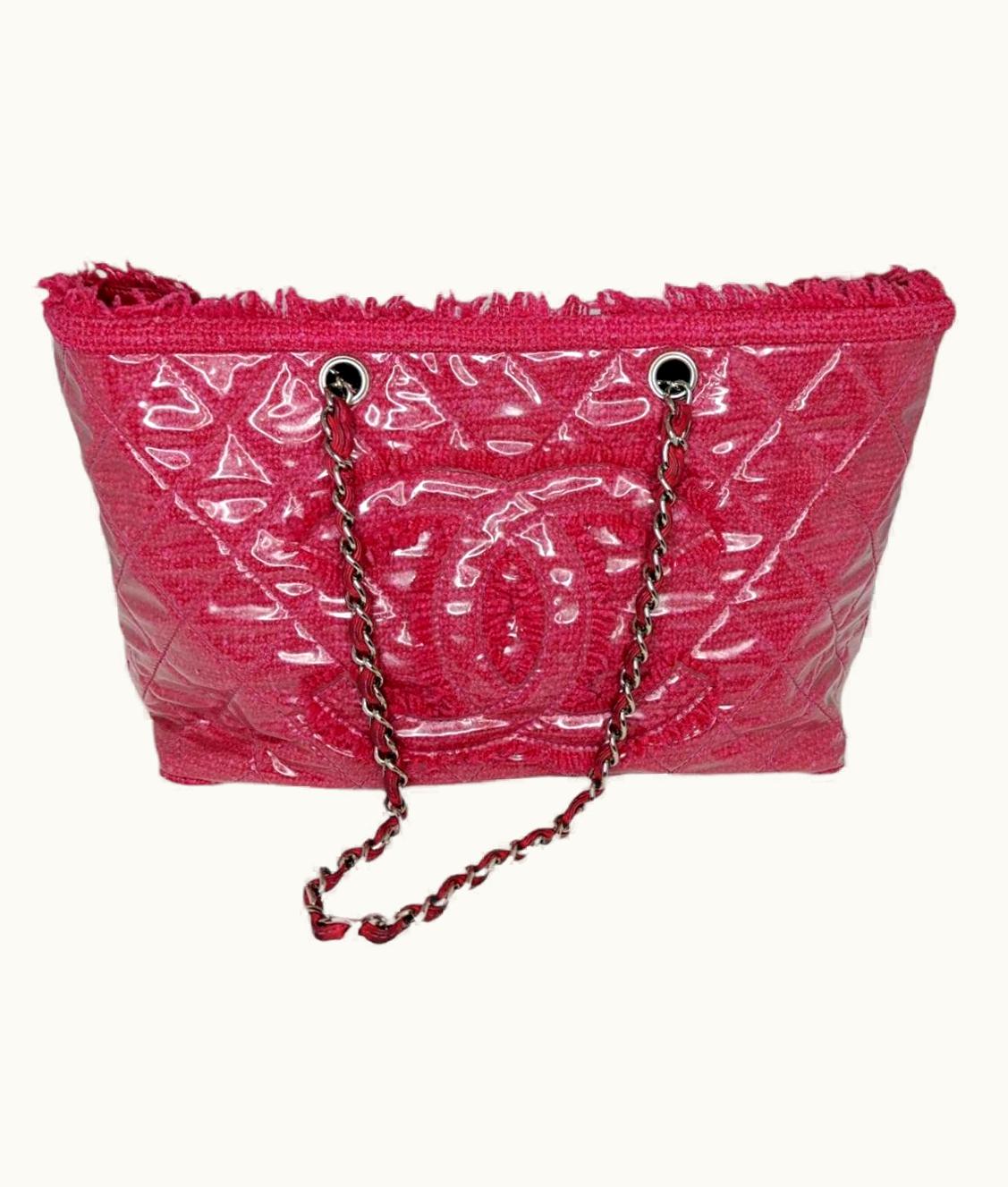Chanel Vinyl Quilted Funny Tweed Tote Pink | GLINT