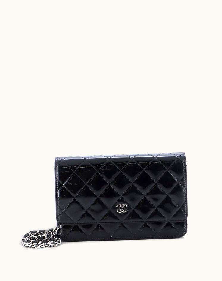 Chanel Wallet On Chain Quilted Patent Black | GLINT