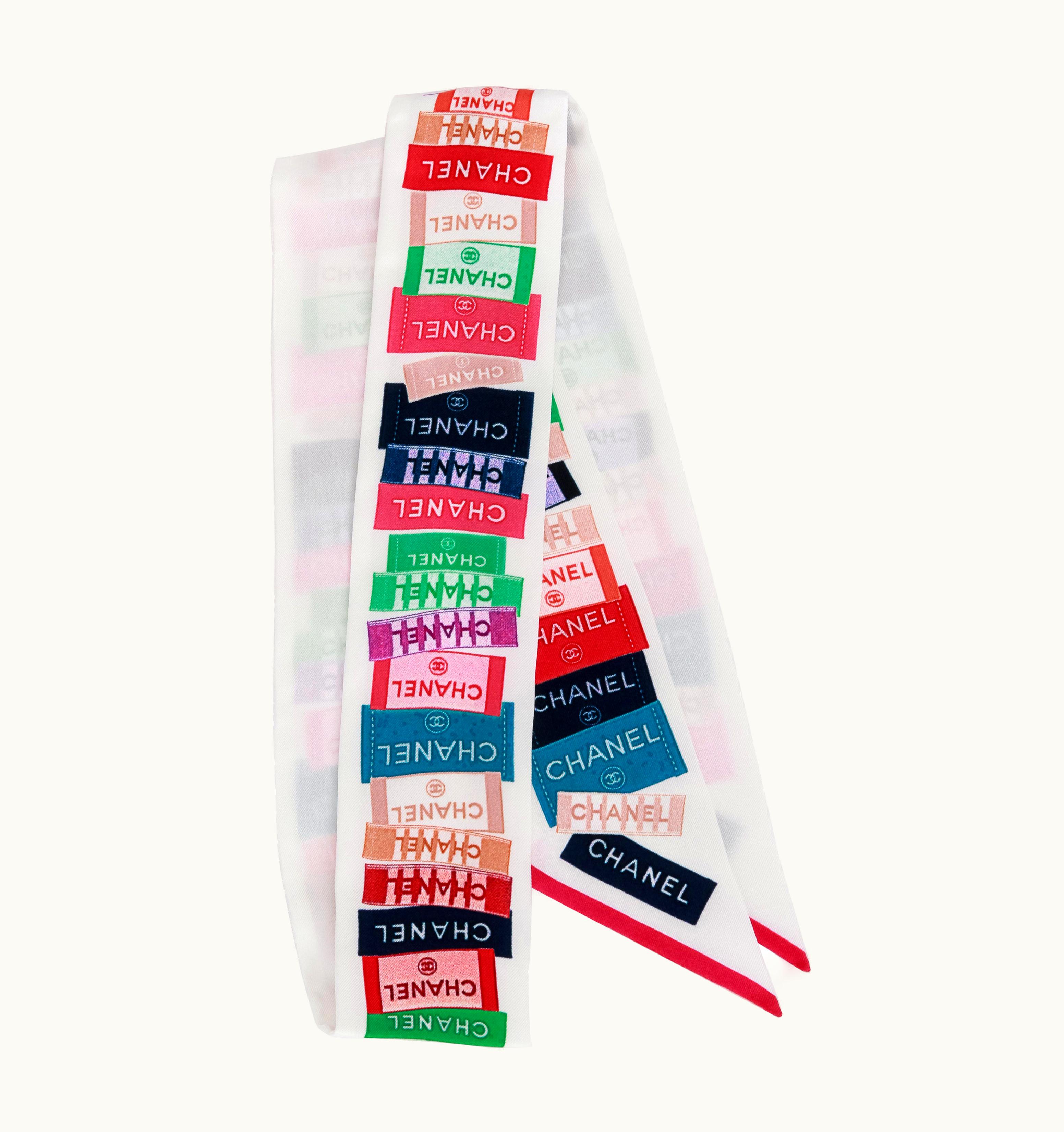 Chanel White Silk Labels Twilly | GLINT