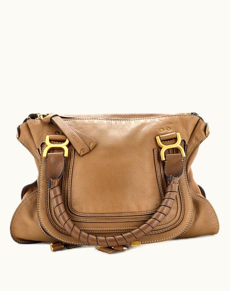 Chloe Marcie Shoulder Bag Leather Medium Fair Condition Brown Green Gold | GLINT