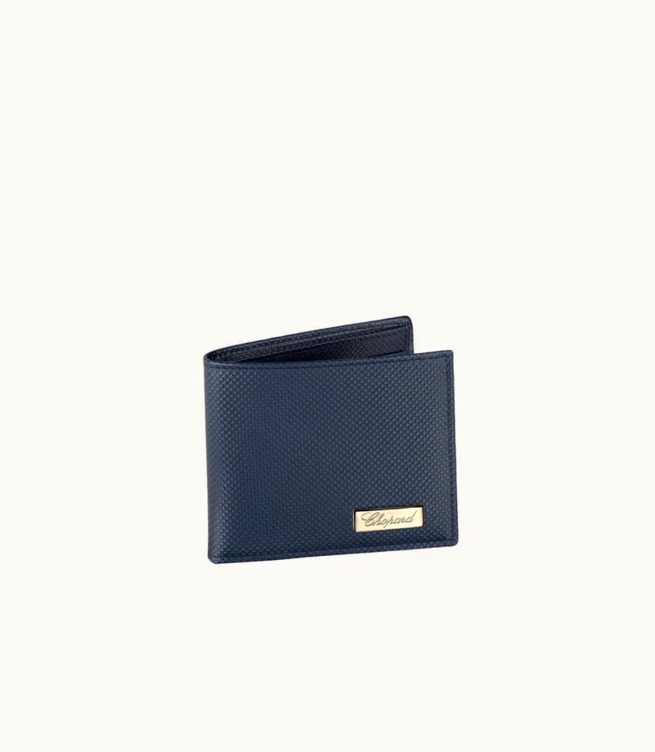 Chopard Classic Racing Mini Wallet Dark Blue Grid Pattern Calfskin | GLINT