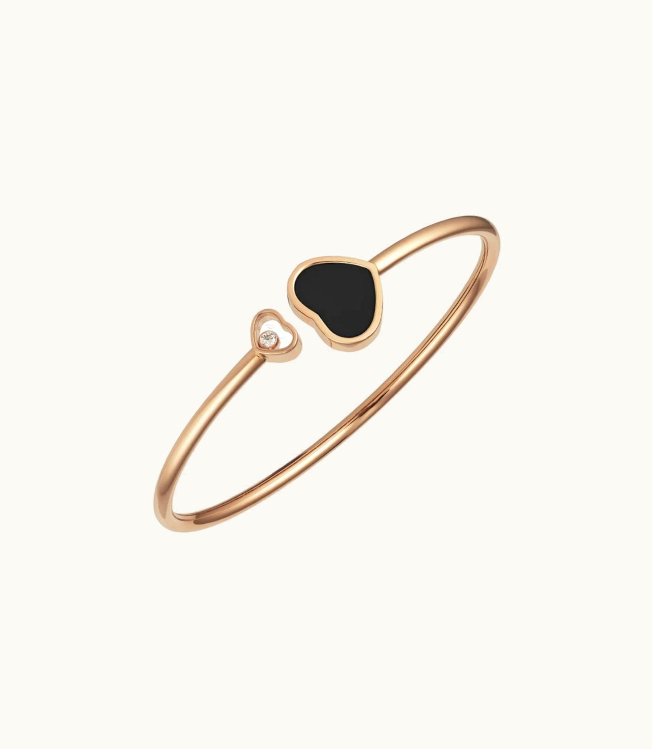Chopard Happy Hearts Bangle, Ethical Rose Gold, Diamond, Onyx | GLINT