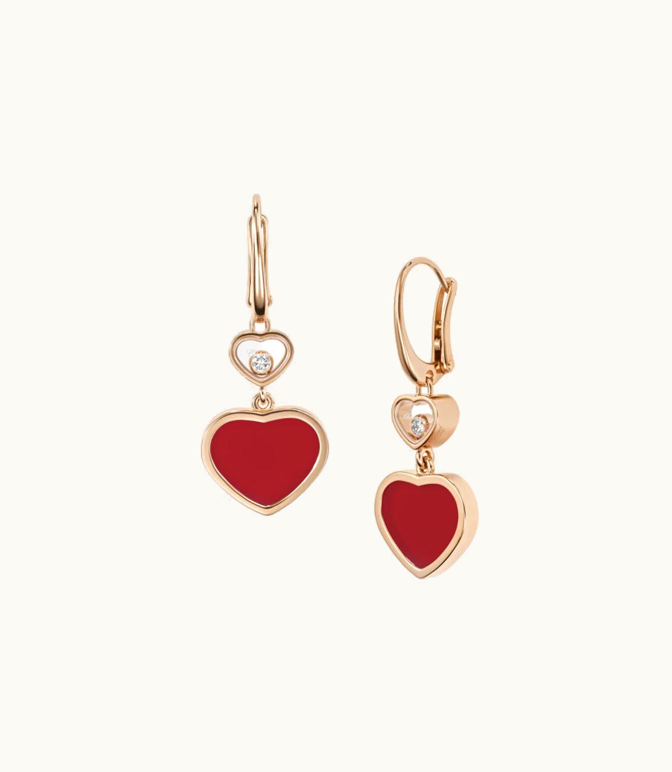 Chopard Happy Hearts Earrings, Ethical Rose Gold, Diamonds, Carnelian | GLINT