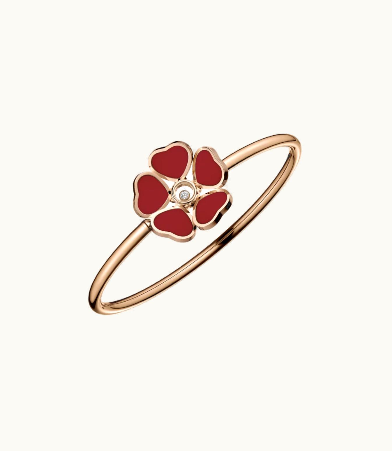 Chopard Happy Hearts Flowers Bangle, Ethical Rose Gold, Diamond, Red Stone | GLINT