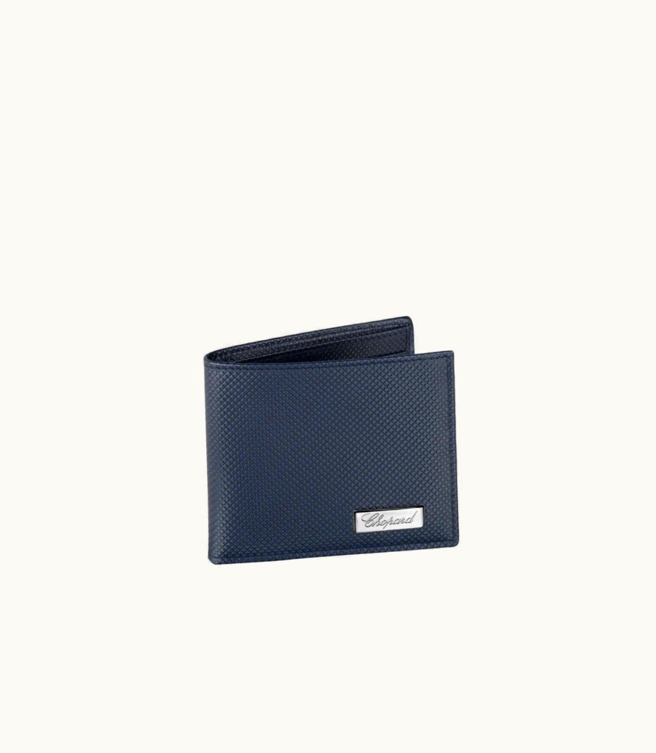 Chopard Il Classico Mini Wallet Dark Blue Grid Pattern Calfskin | GLINT