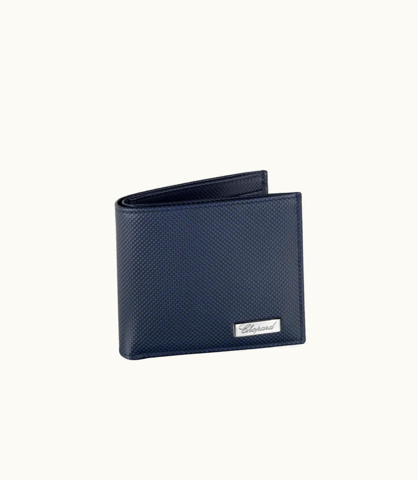 Chopard Il Classico Small Wallet Dark Blue Grid Pattern Calfskin | GLINT