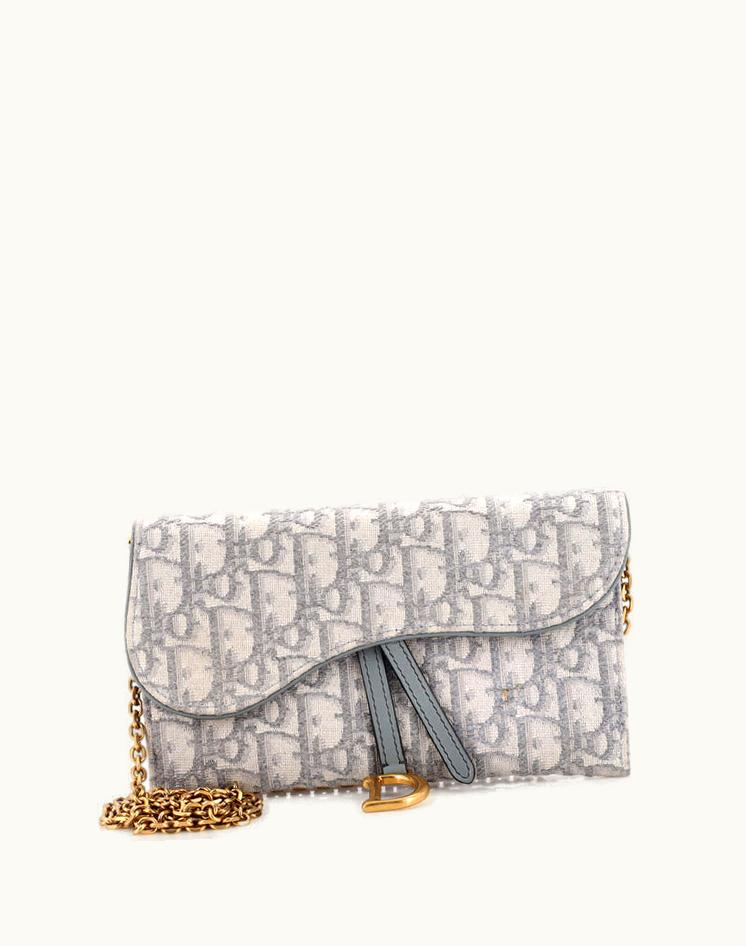 Christian Dior Saddle Chain Wallet Oblique Canvas Gray | GLINT