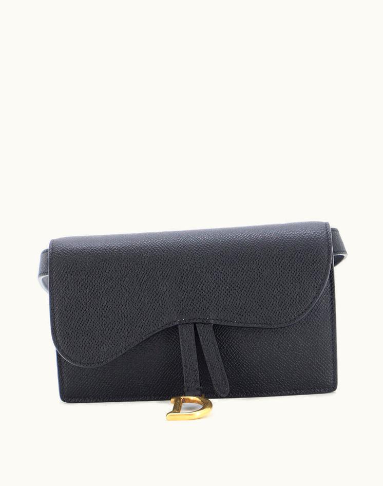 Christian Dior Saddle Rectangular Belt Bag Leather Black Aged Gold | GLINT