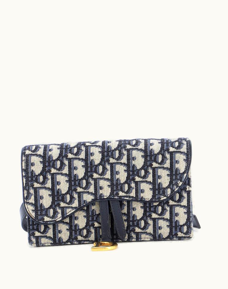 Christian Dior Saddle Rectangular Belt Bag Oblique Canvas Coated Canvas Blue Aged Gold | GLINT