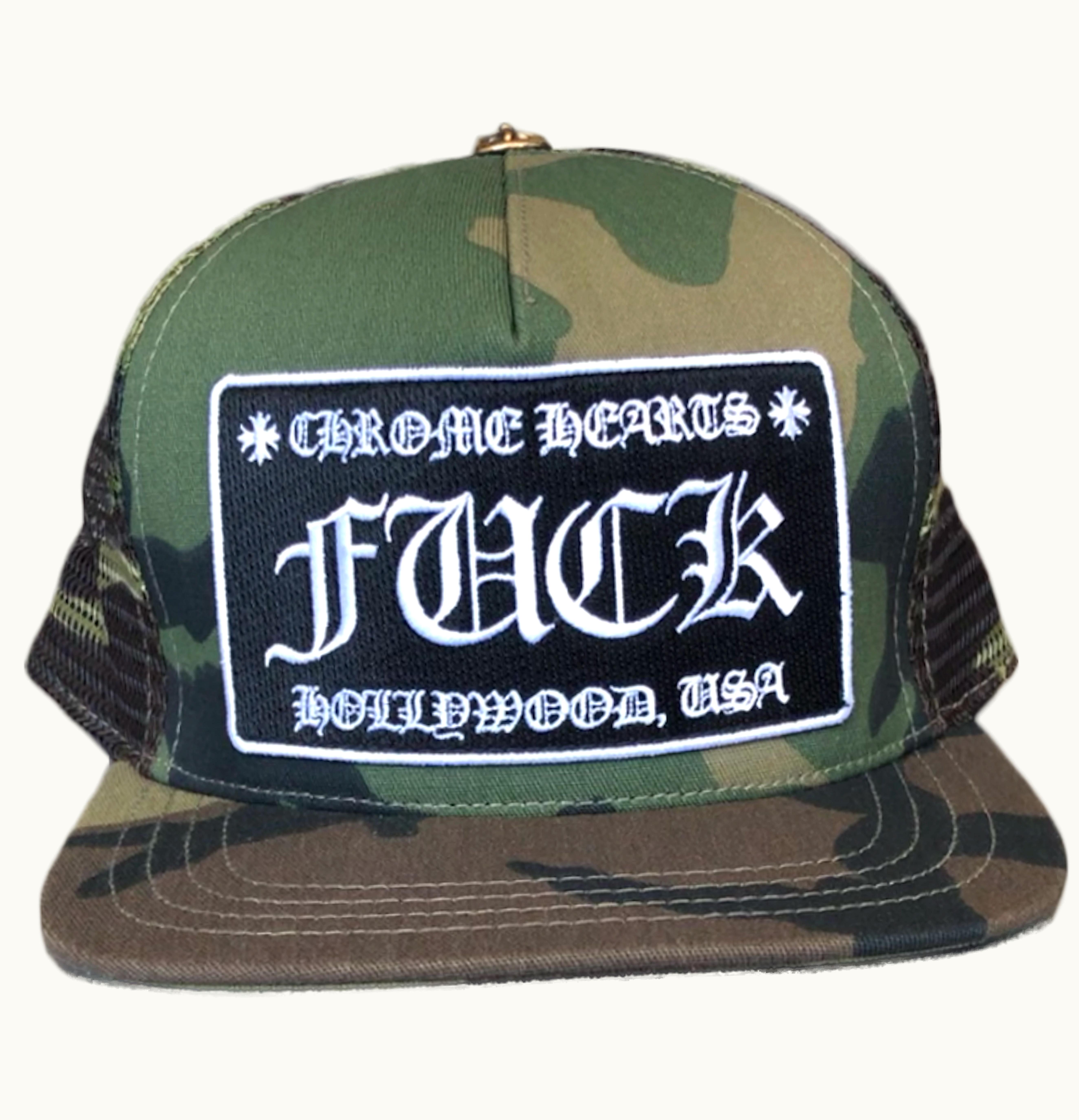 Chrome Hearts FUCK Hollywood Trucker Hat Camo | GLINT