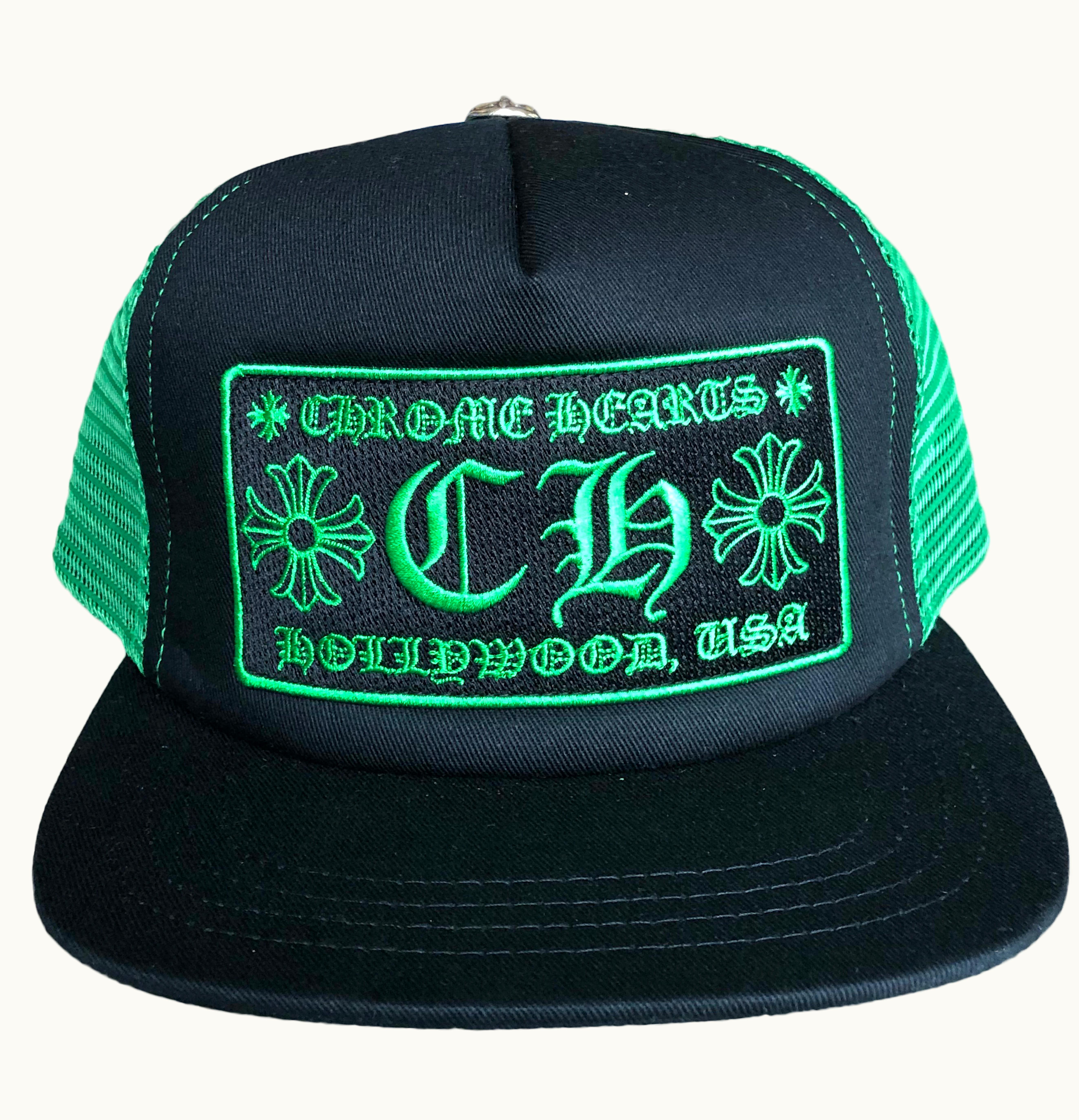 Chrome Hearts CH Hollywood Trucker Hat Black Green | GLINT