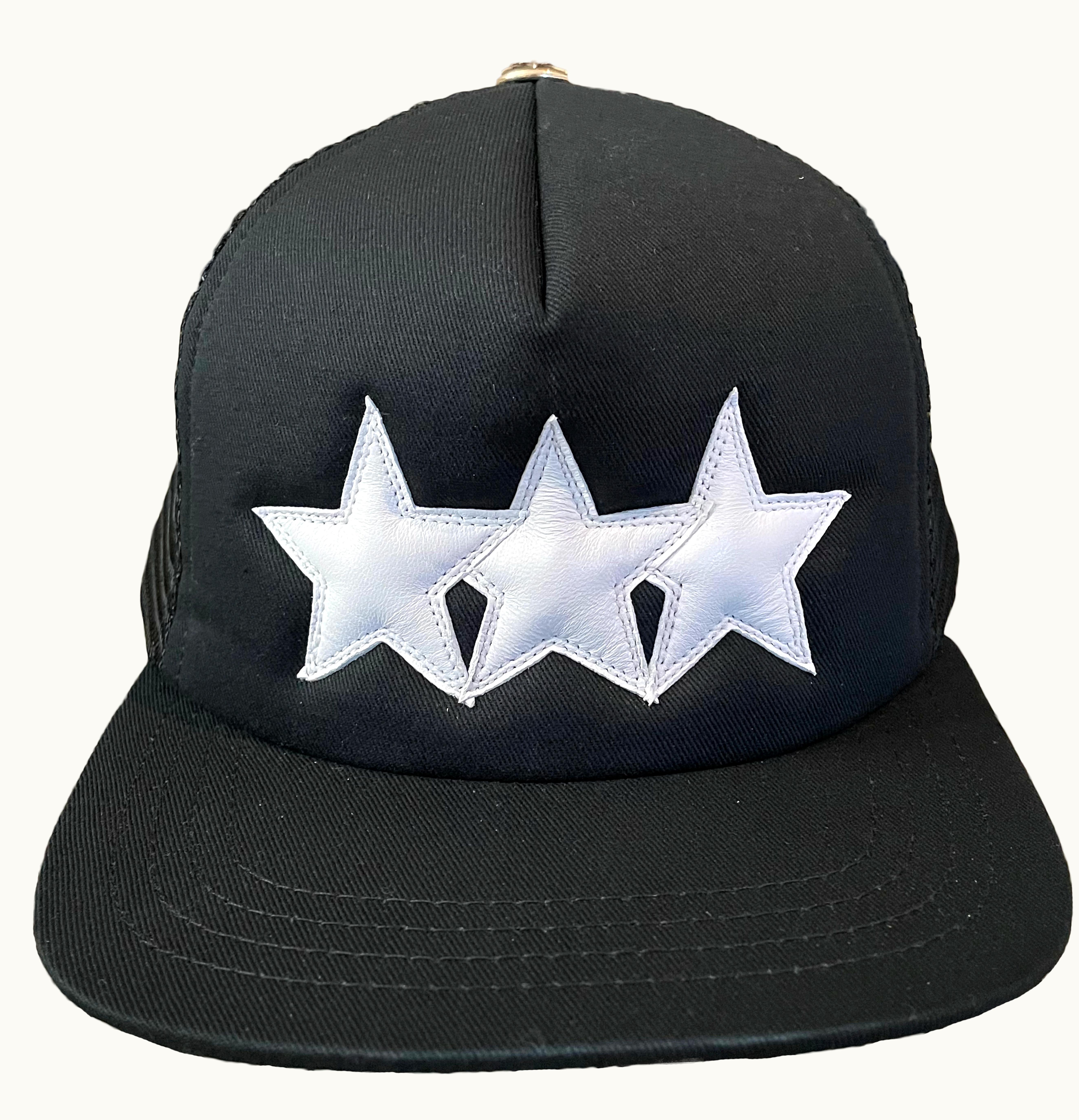 Chrome Hearts Leather Star Trucker Hat Black White | GLINT
