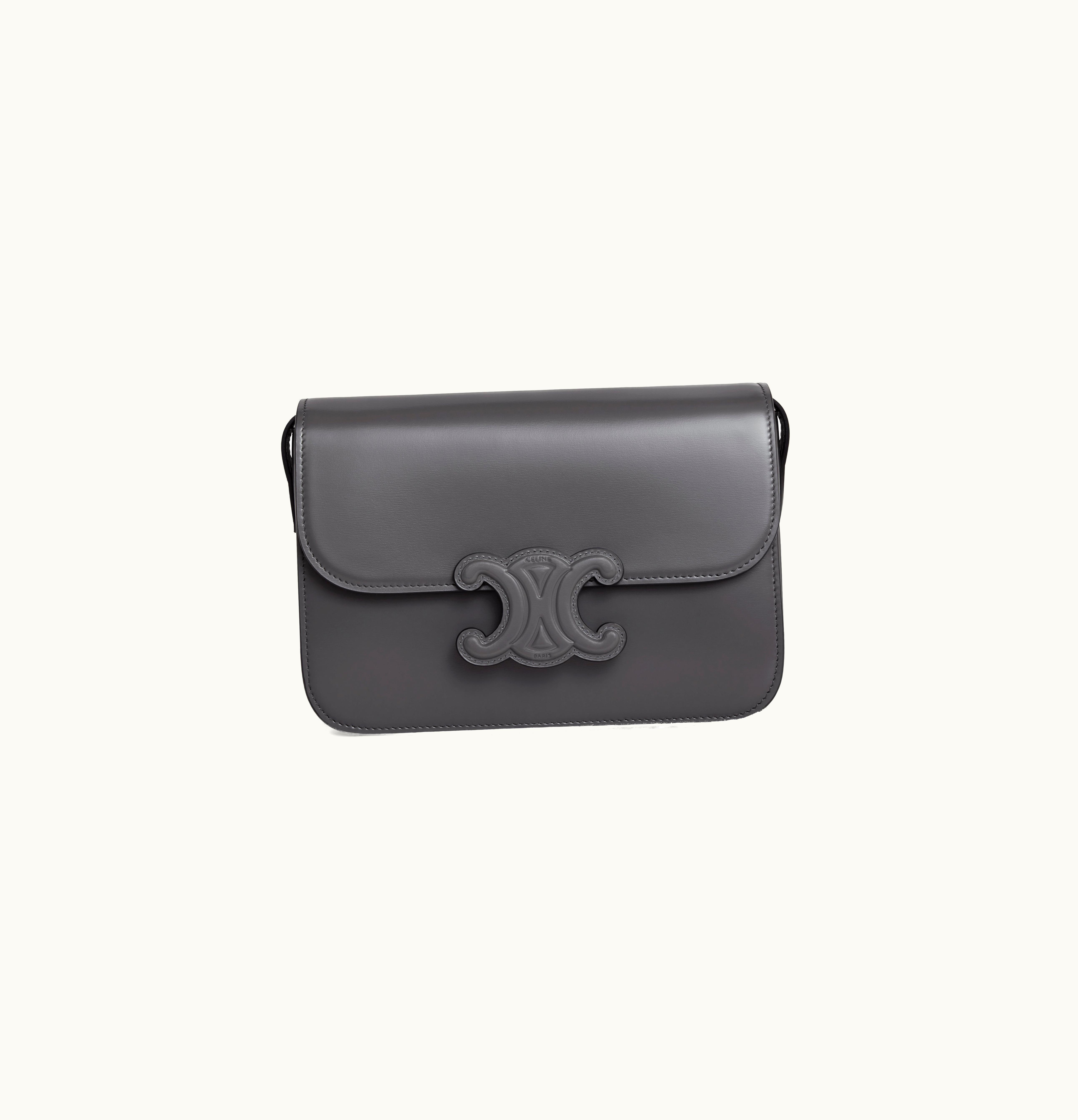 Celine Classique Cuir Triomphe Bag In Shiny Calfskin Anthracite | GLINT