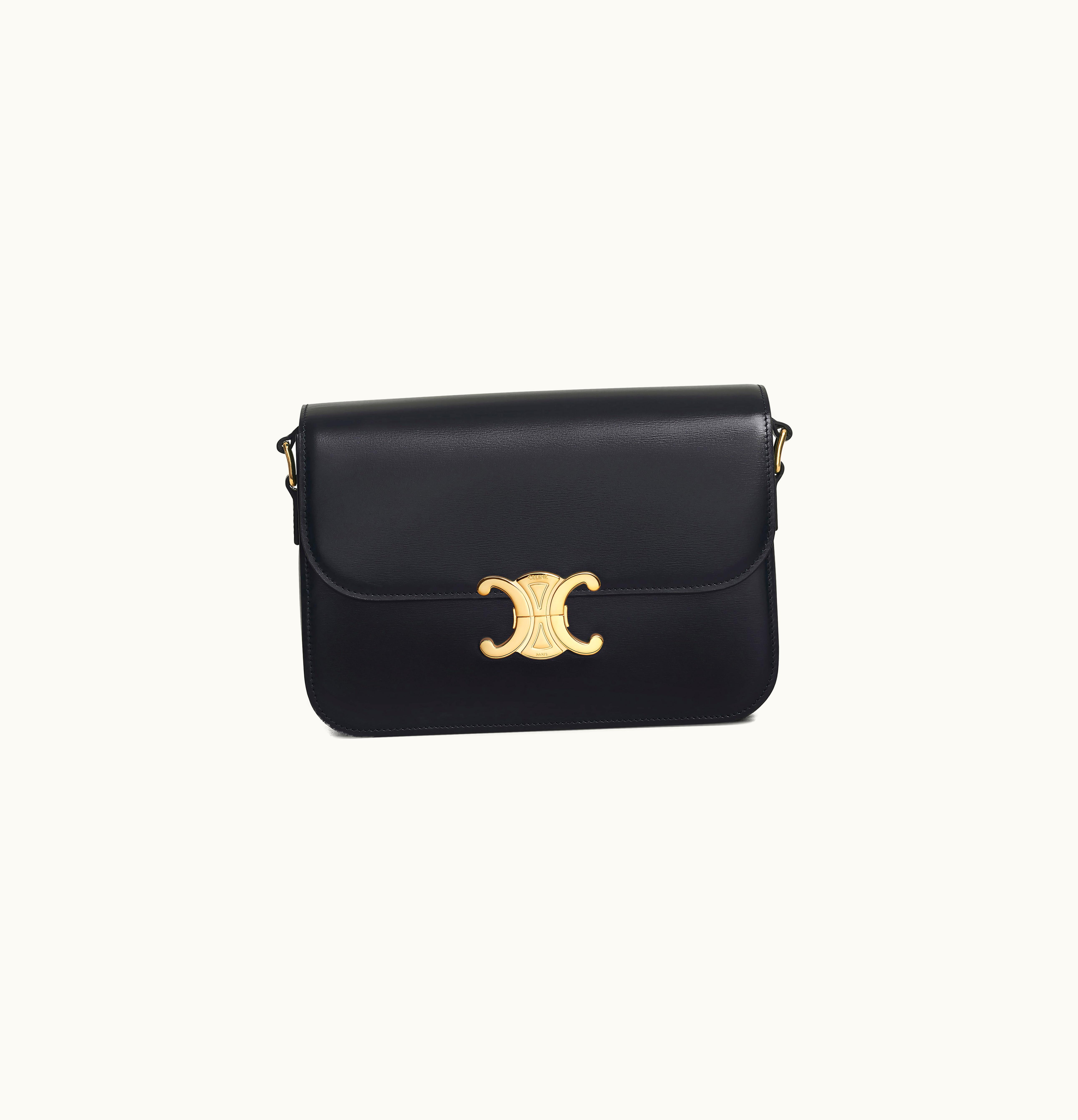 Celine Classique Triomphe Bag In Shiny Calfskin Black | GLINT
