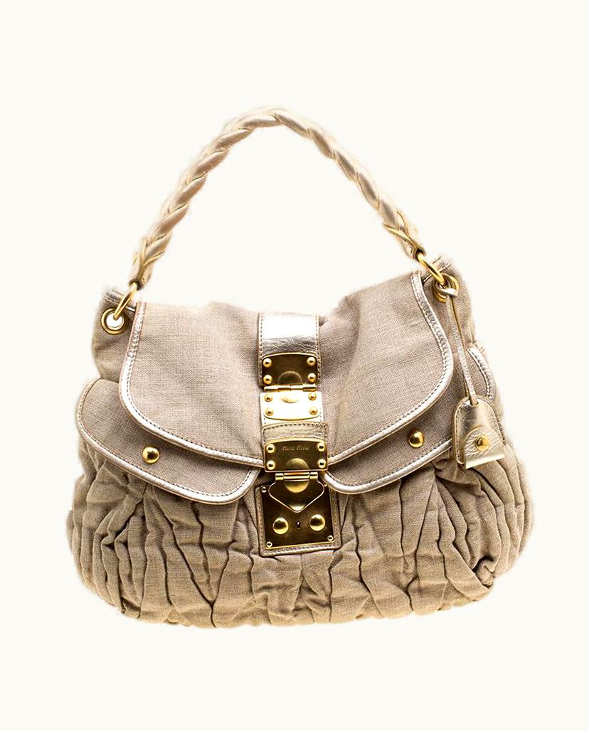 Miu Miu Beige Canvas Coffer Hobo | GLINT