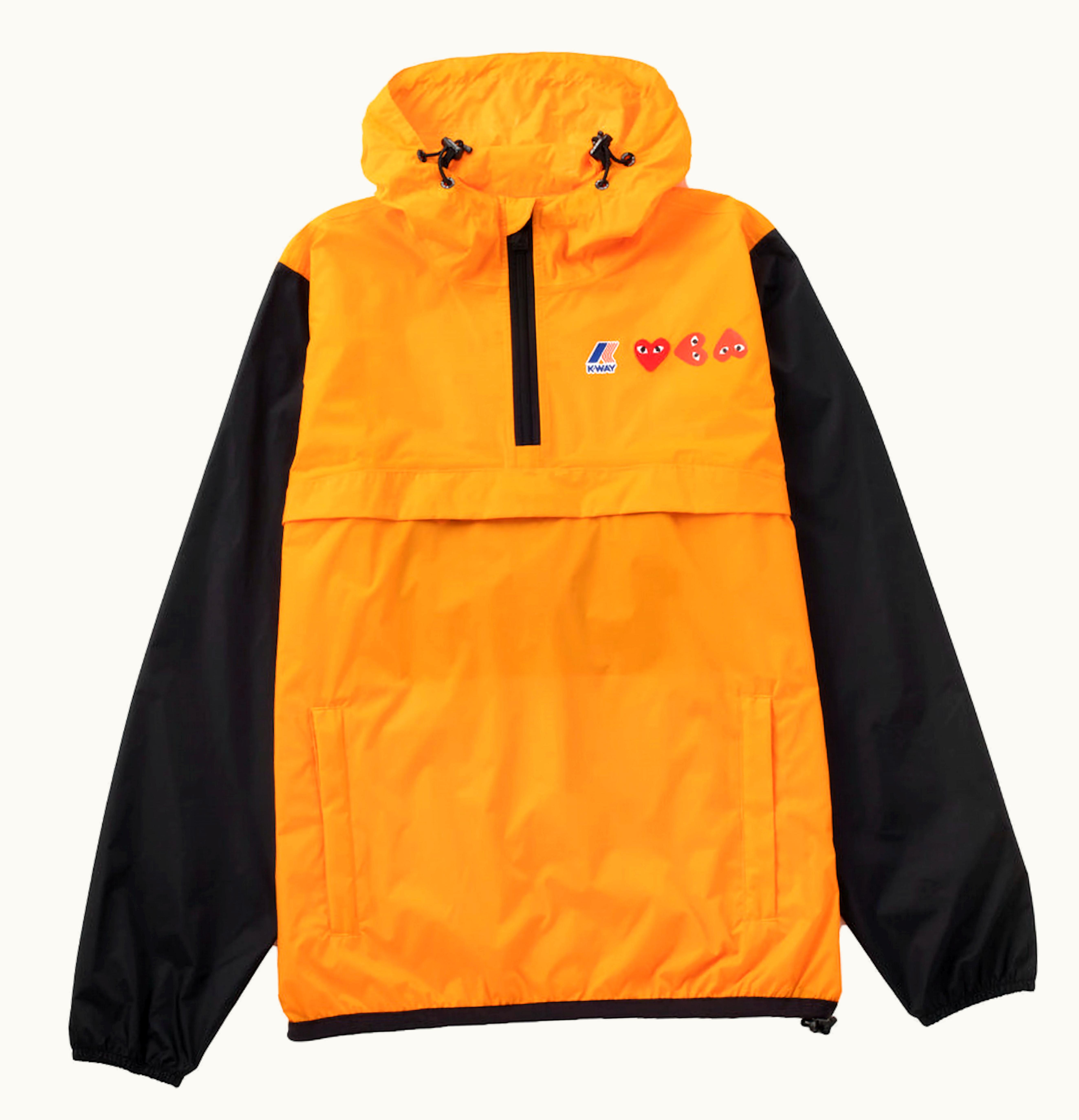 CDG Play x K Way Logos Half Zip Jacket Orange Black | GLINT