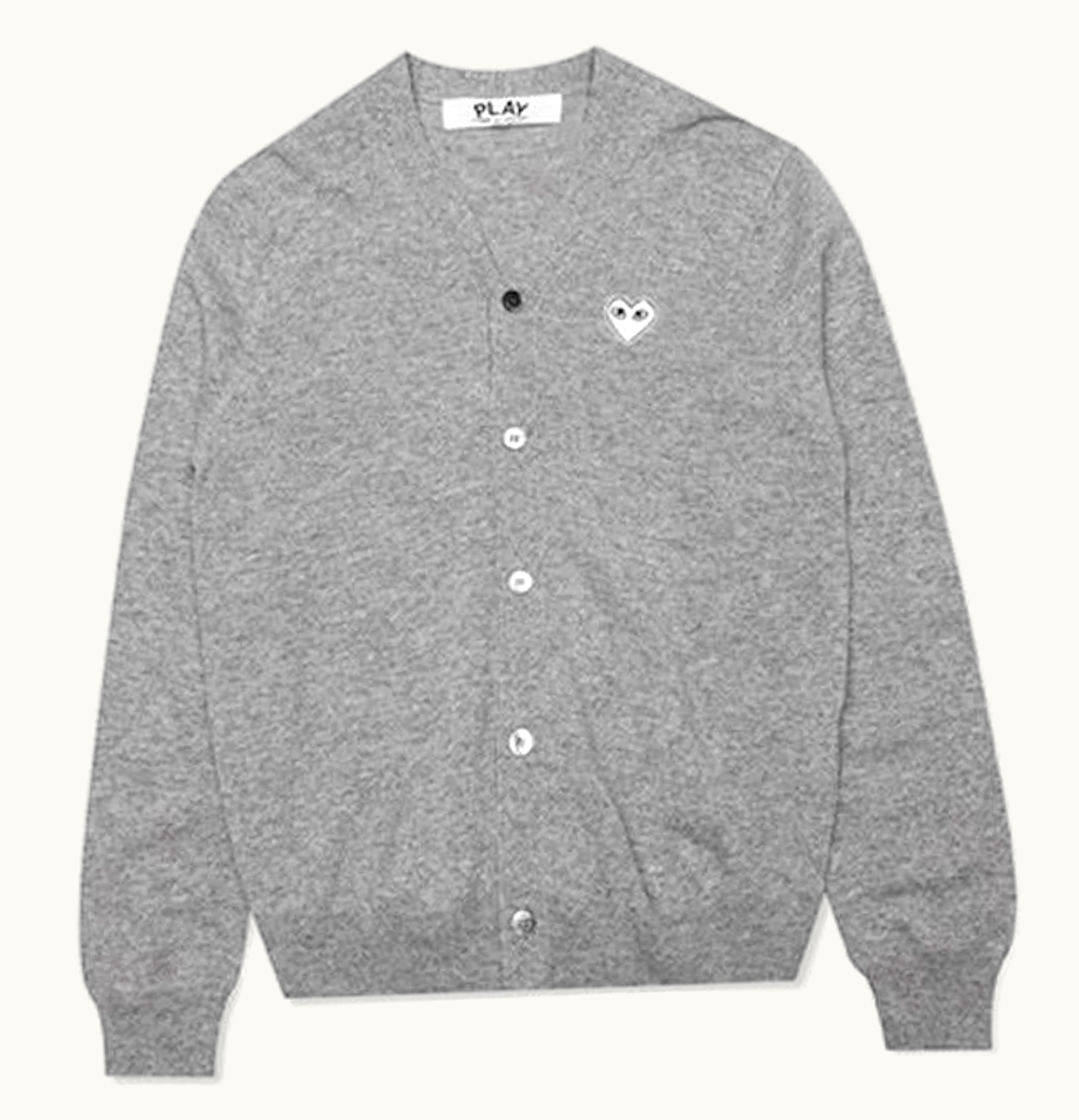 Comme des Garcons PLAY White Heart Knit Cardigan Sweater Light Grey | GLINT