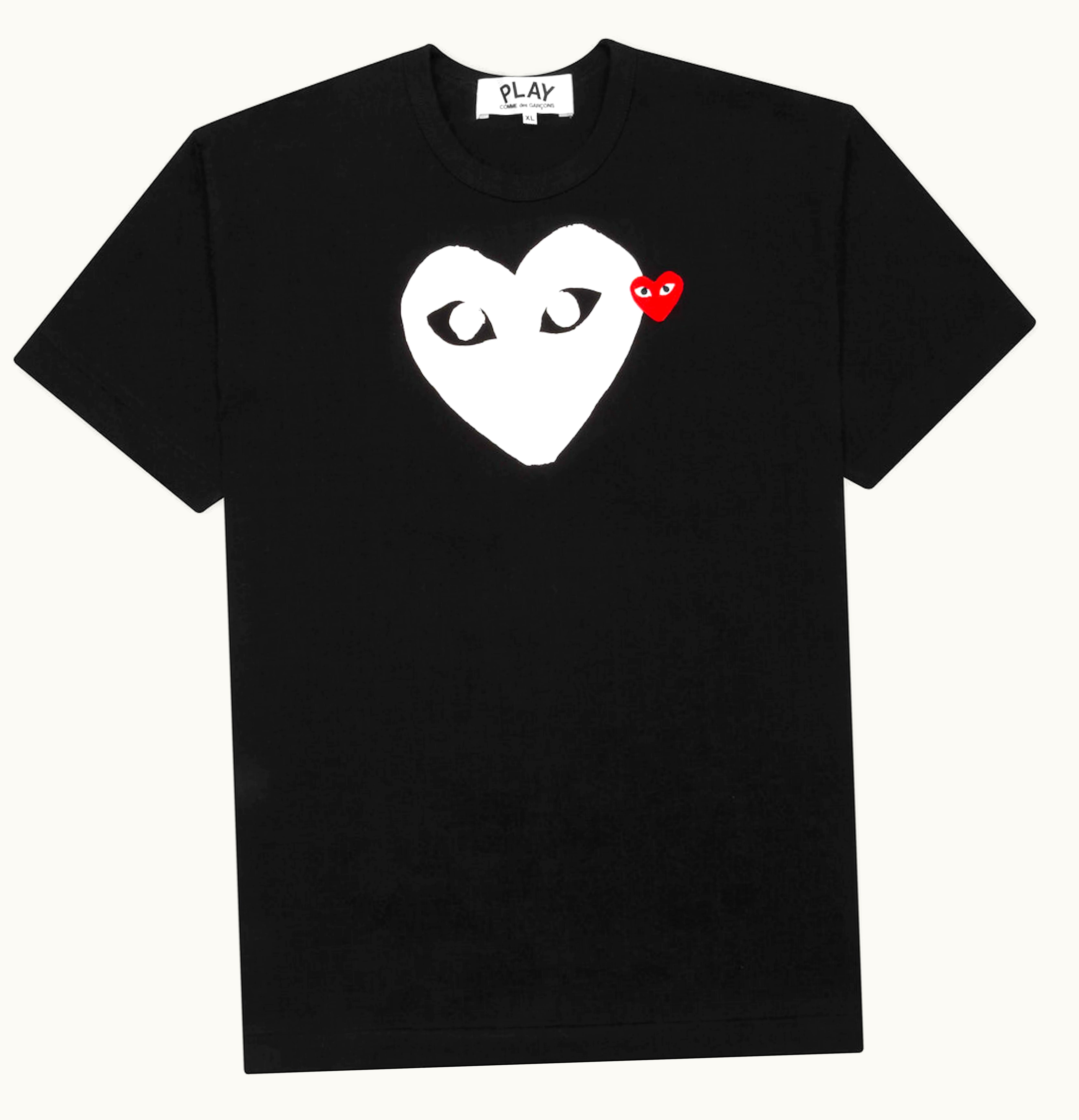 Comme des Garcons PLAY White Heart Red Emblem T shirt Black | GLINT