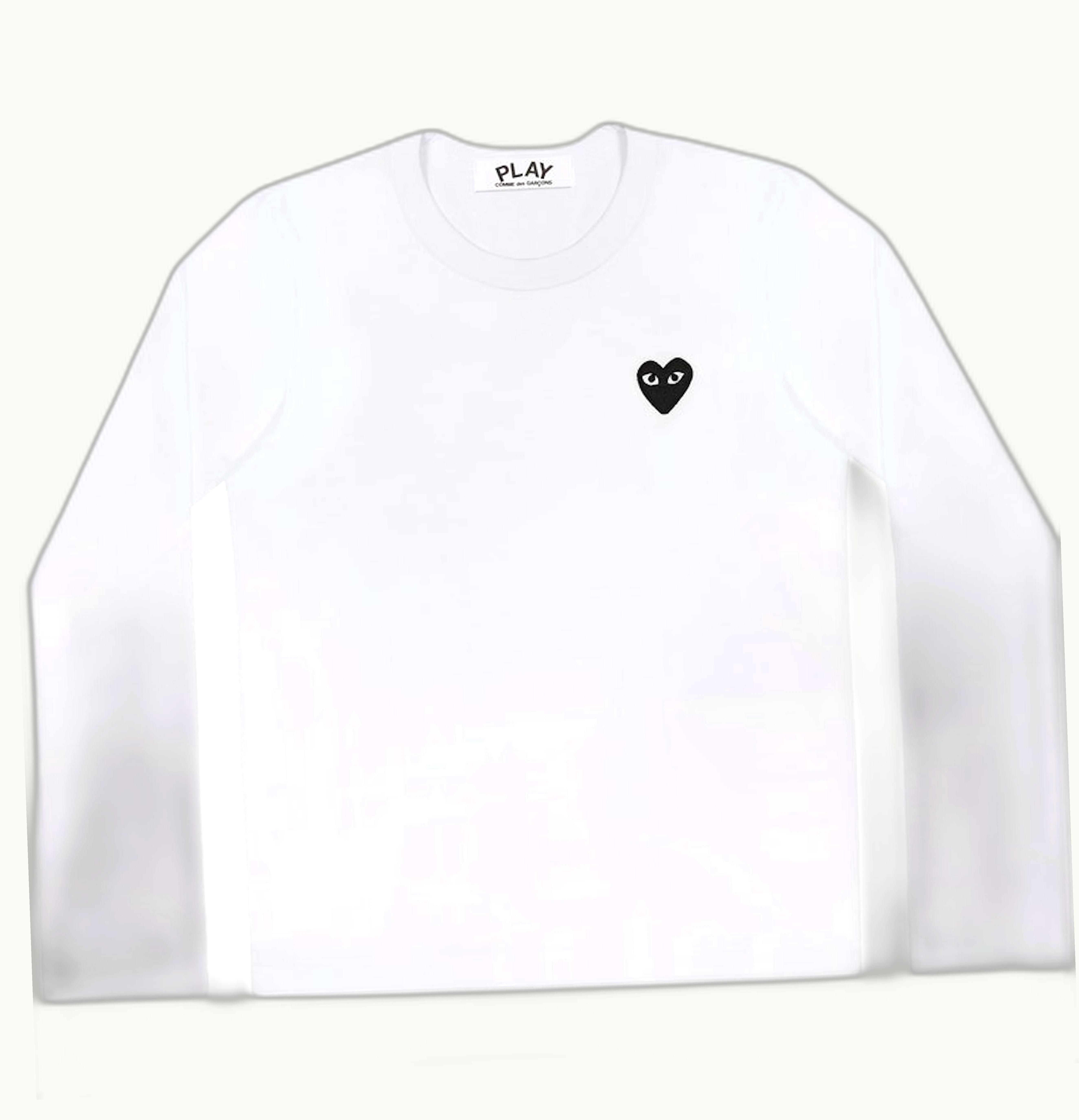 Comme des Garcons PLAY Embroidered Black Heart Long Sleeve T shirt White | GLINT