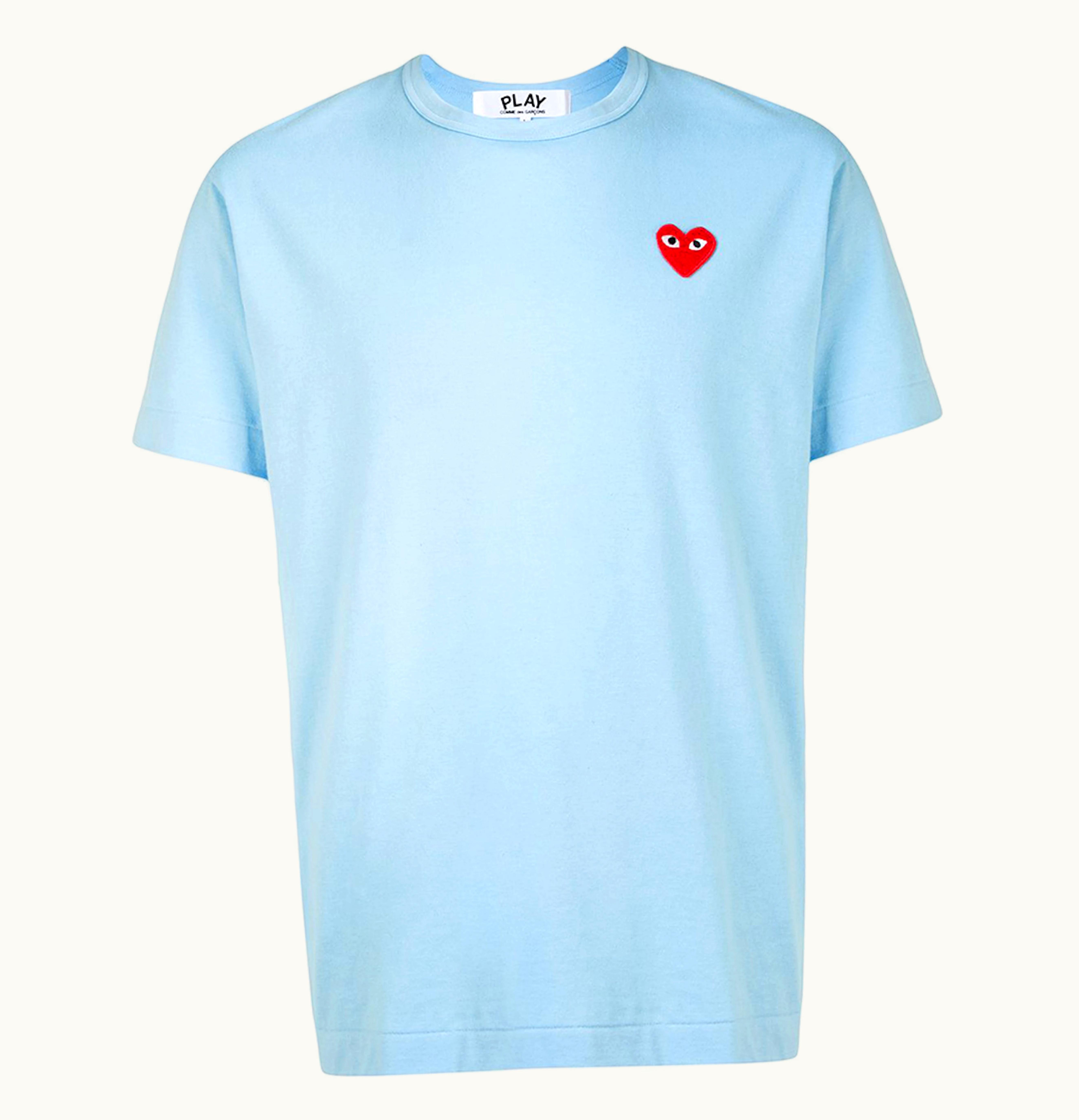 Comme des Garcons PLAY Logo Embroidered Tee Baby Blue Red | GLINT