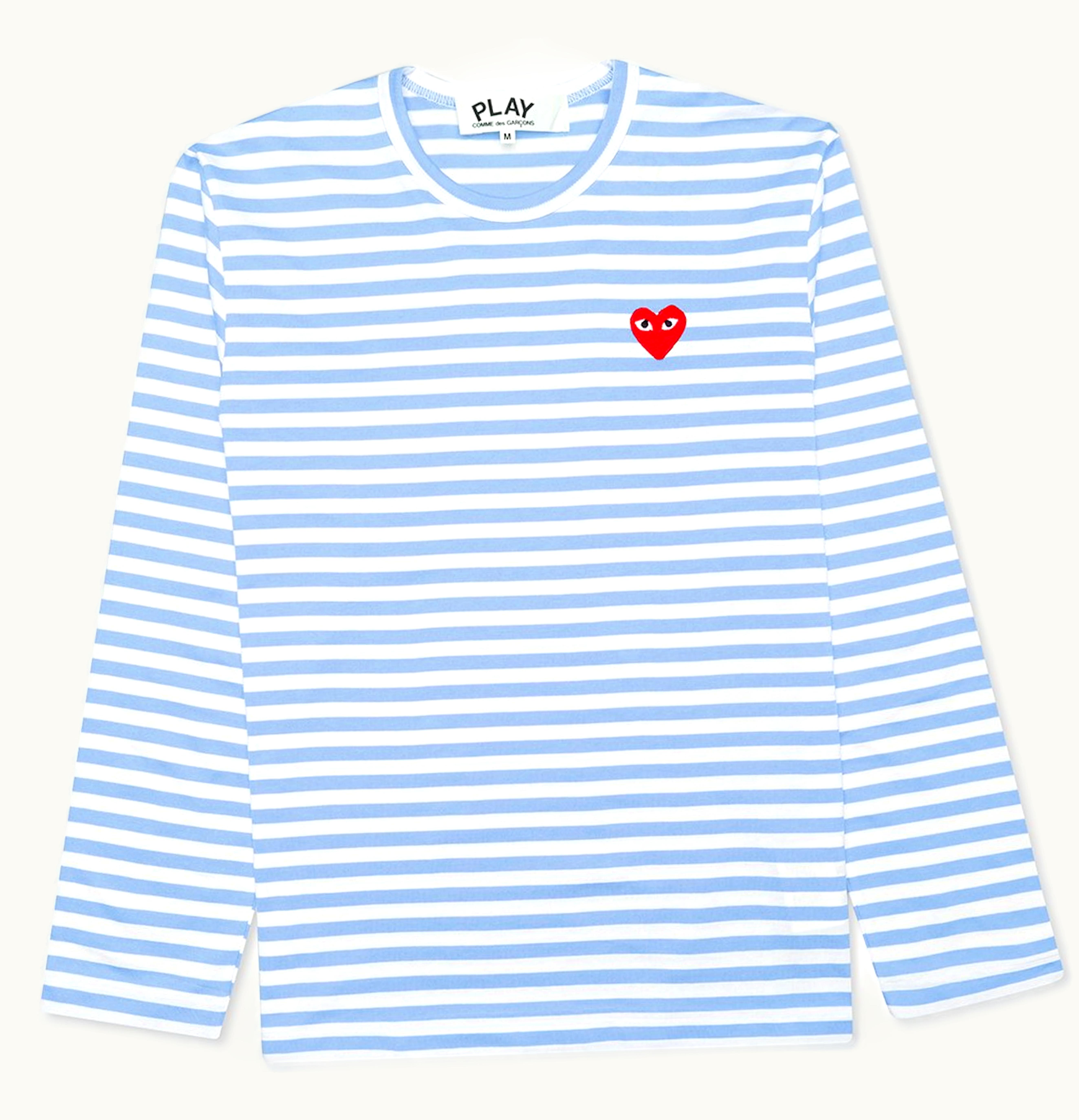 Comme des Garcons PLAY Womens Pastelle Striped L S T shirt Blue White | GLINT