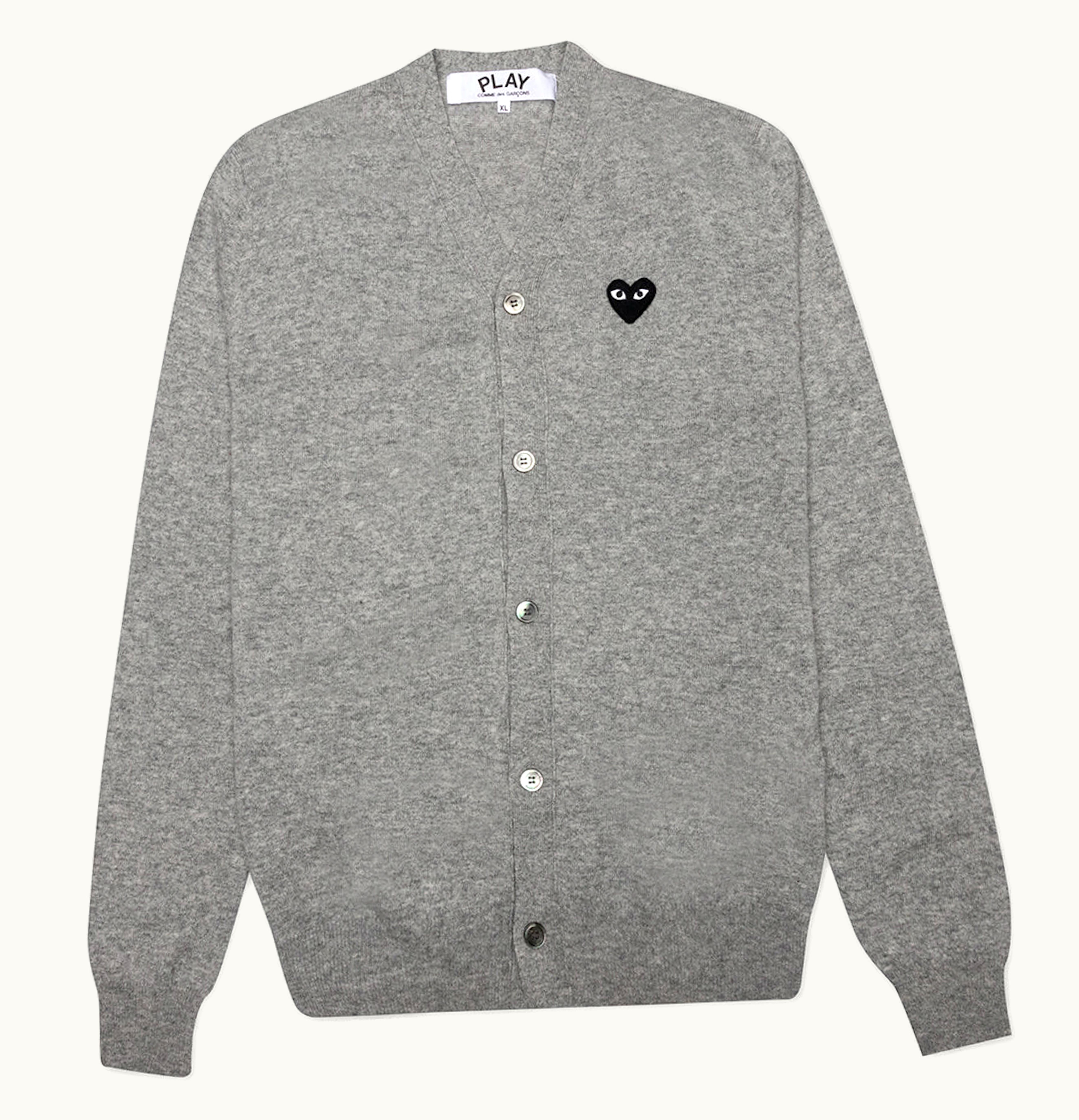 Comme des Garcons PLAY Black Heart Knit Cardigan Sweater Grey | GLINT