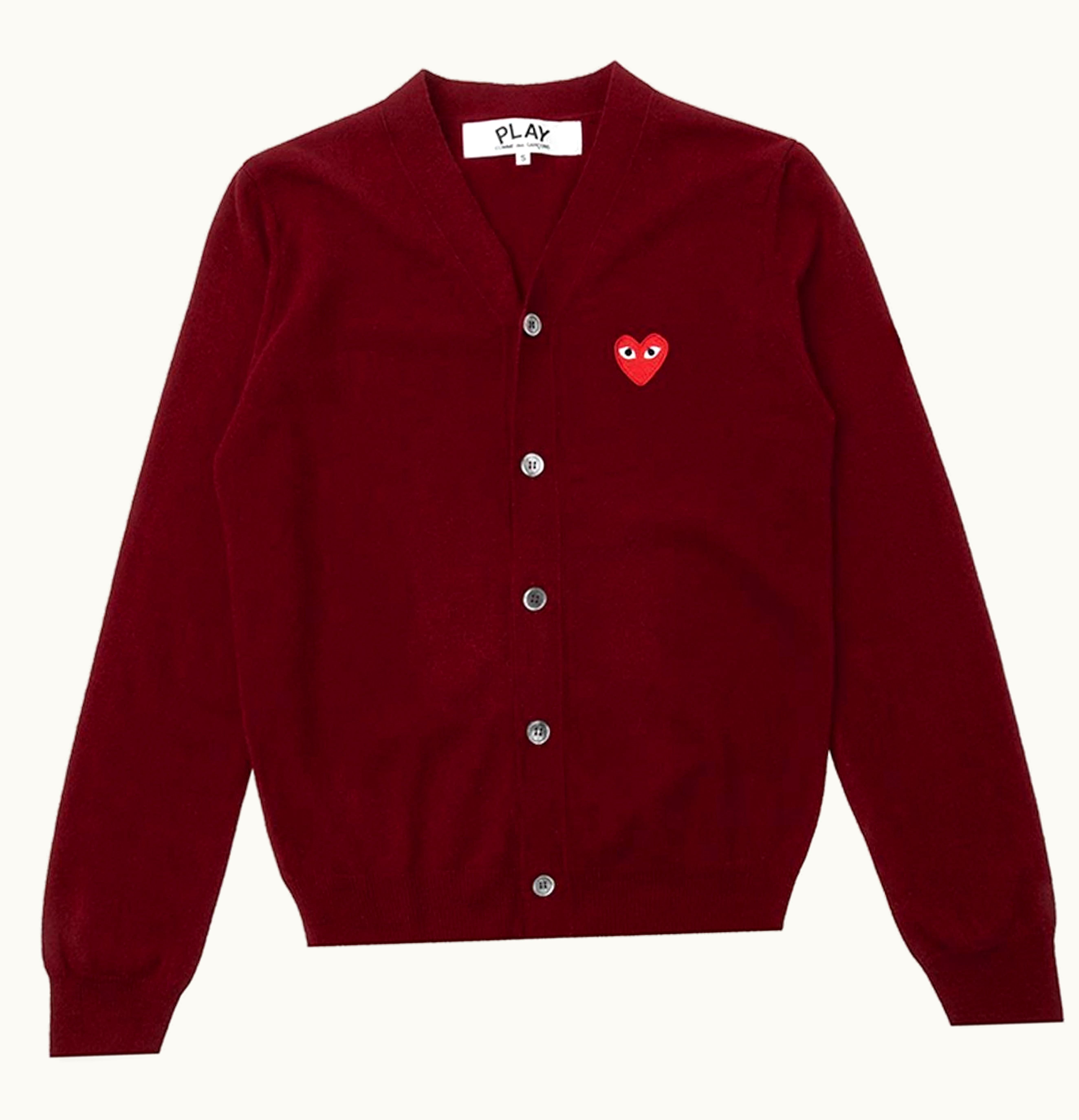 Comme des Garcons PLAY Red Heart Knit Cardigan Sweater Burgundy | GLINT