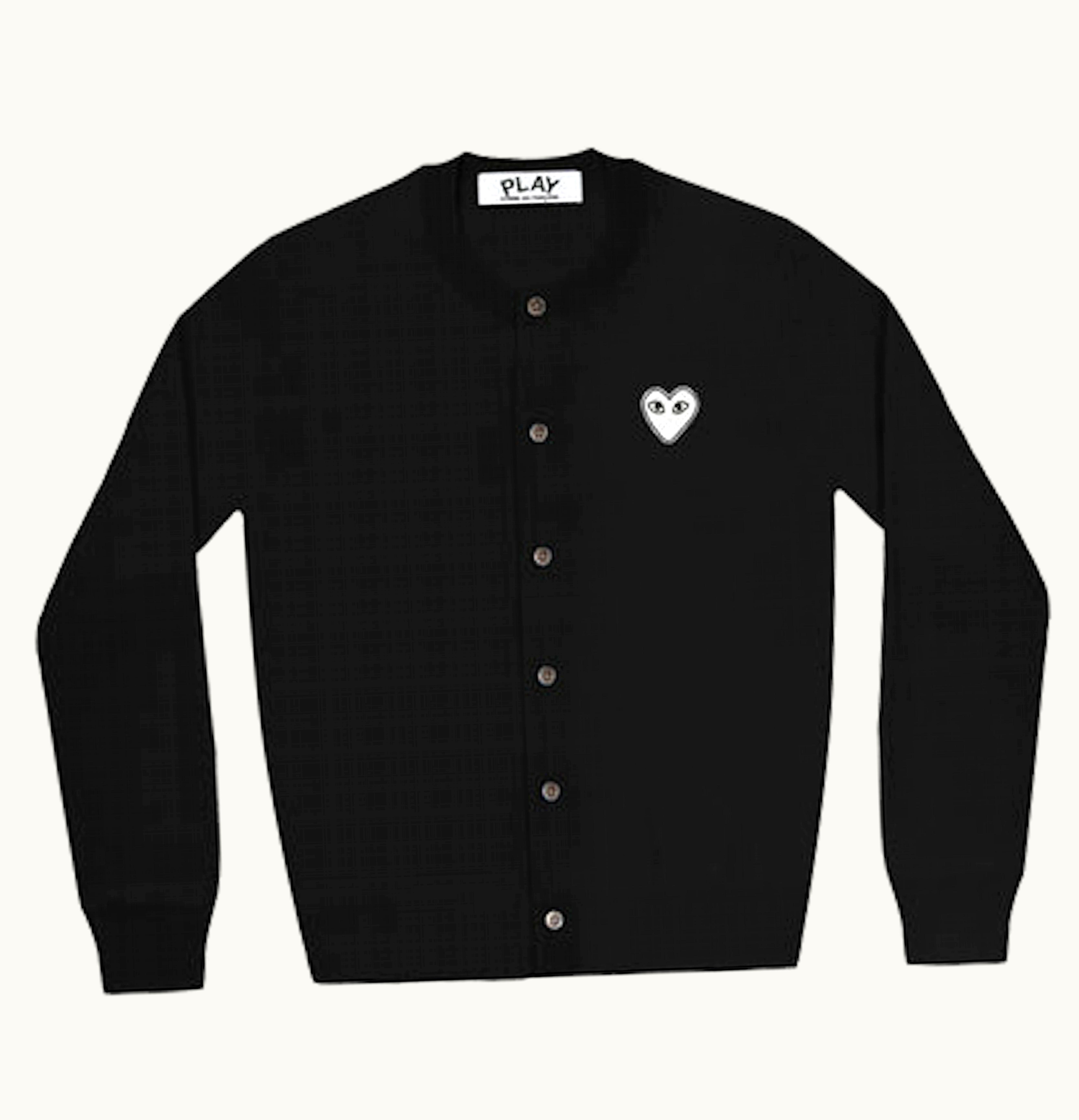 Comme des Garcons PLAY Womens White Heart Knit Cardigan Sweater Black | GLINT