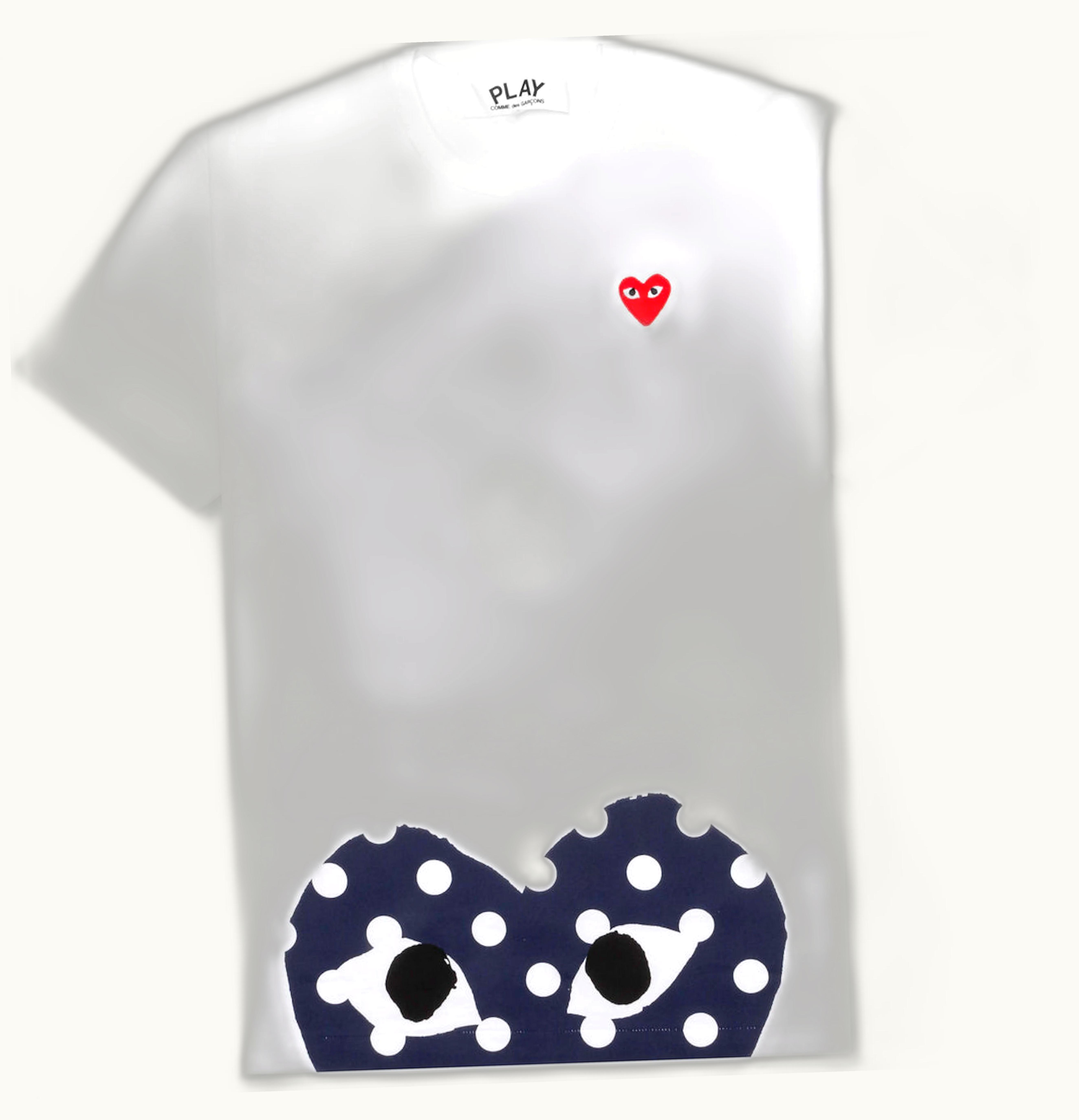 Comme des Garcons PLAY Womens Polka Dot Navy Half Heart T shirt White | GLINT
