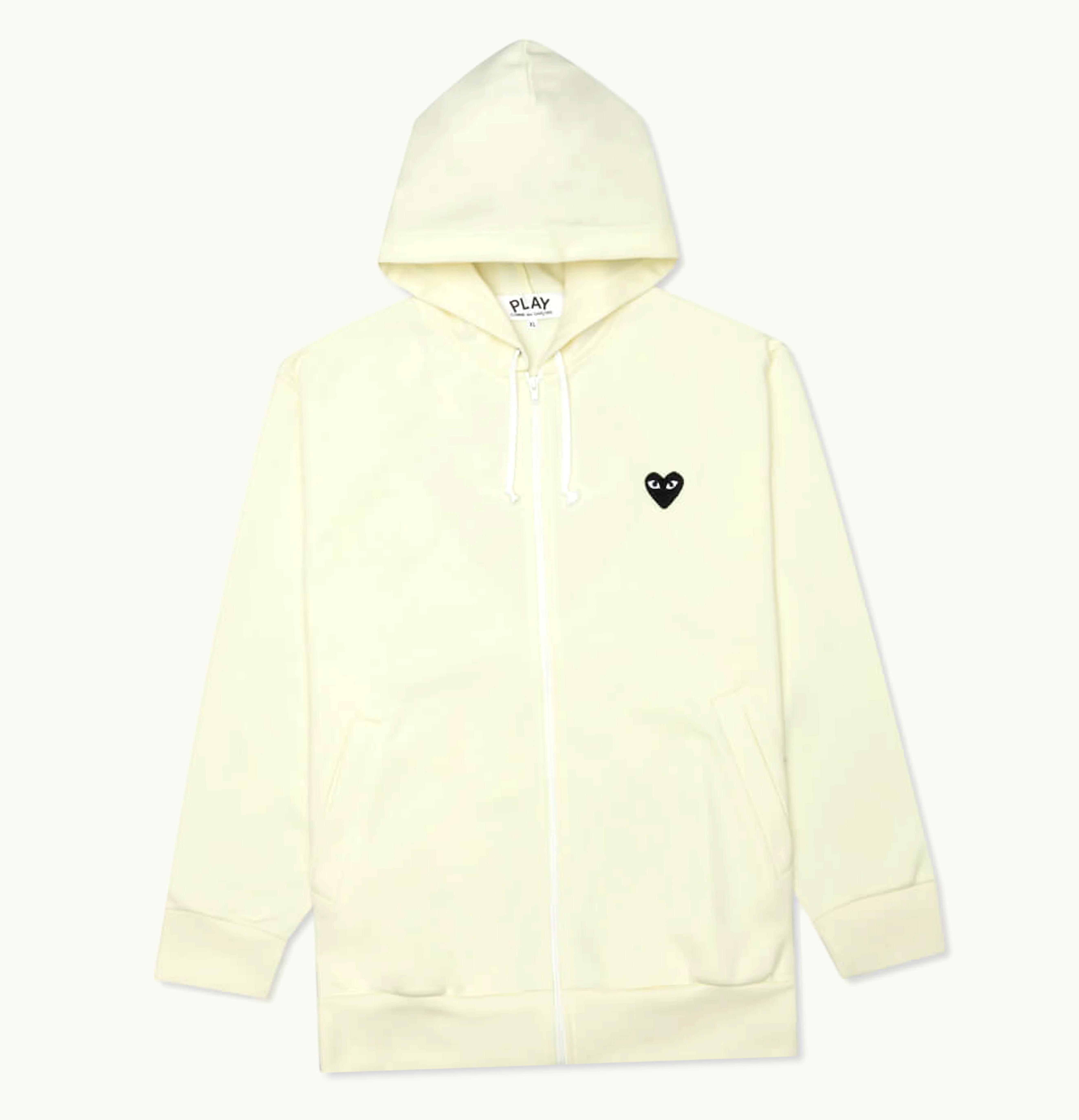 Comme des Garcons PLAY Womens Big Black Heart Zip Up Hoodie Ivory | GLINT