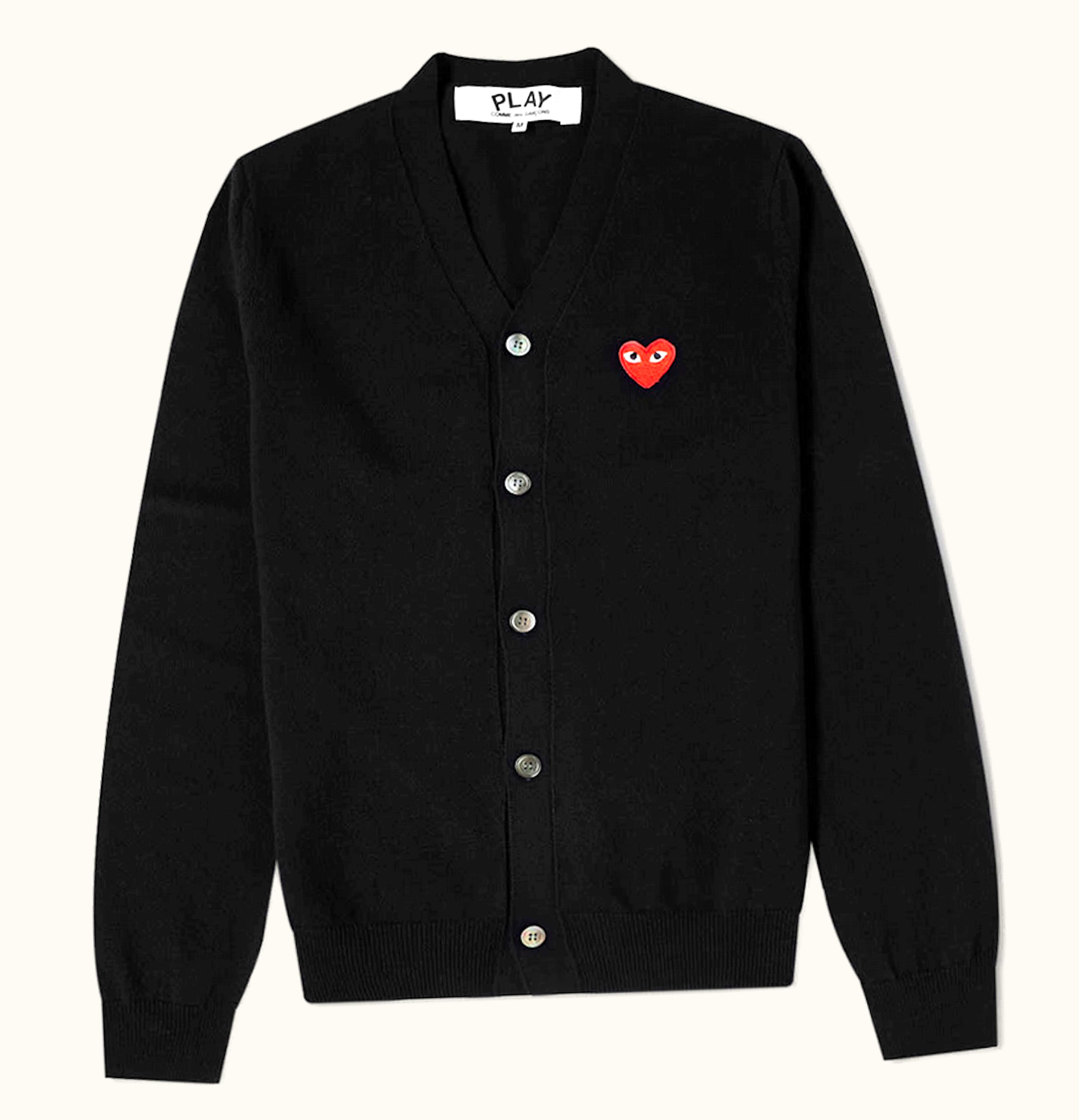 Comme des Garcons PLAY Red Heart Fine Knit Wool Cardigan Black Red | GLINT