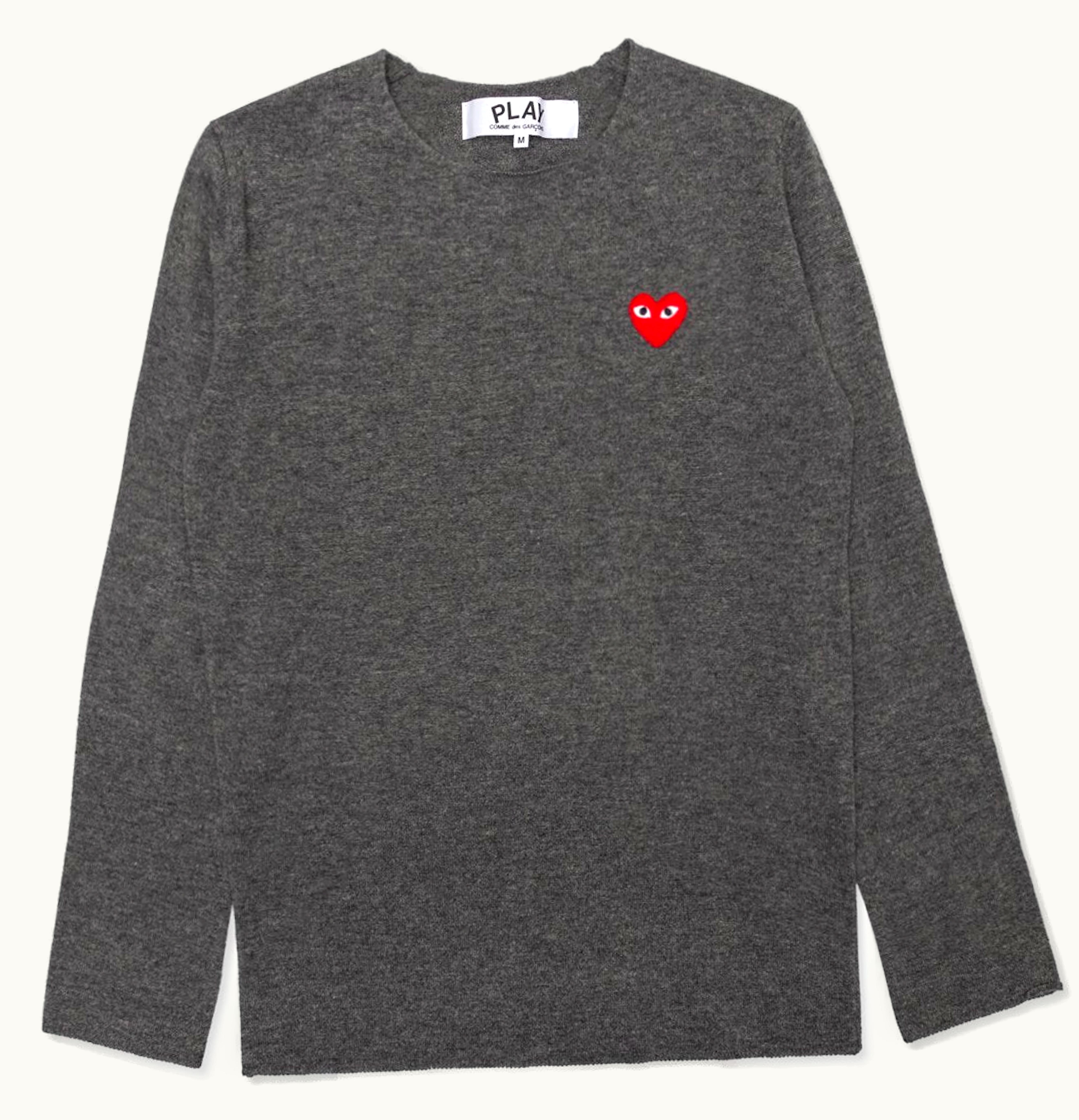 Comme des Garcons PLAY Womens Red Heart Crewneck Sweater Grey | GLINT