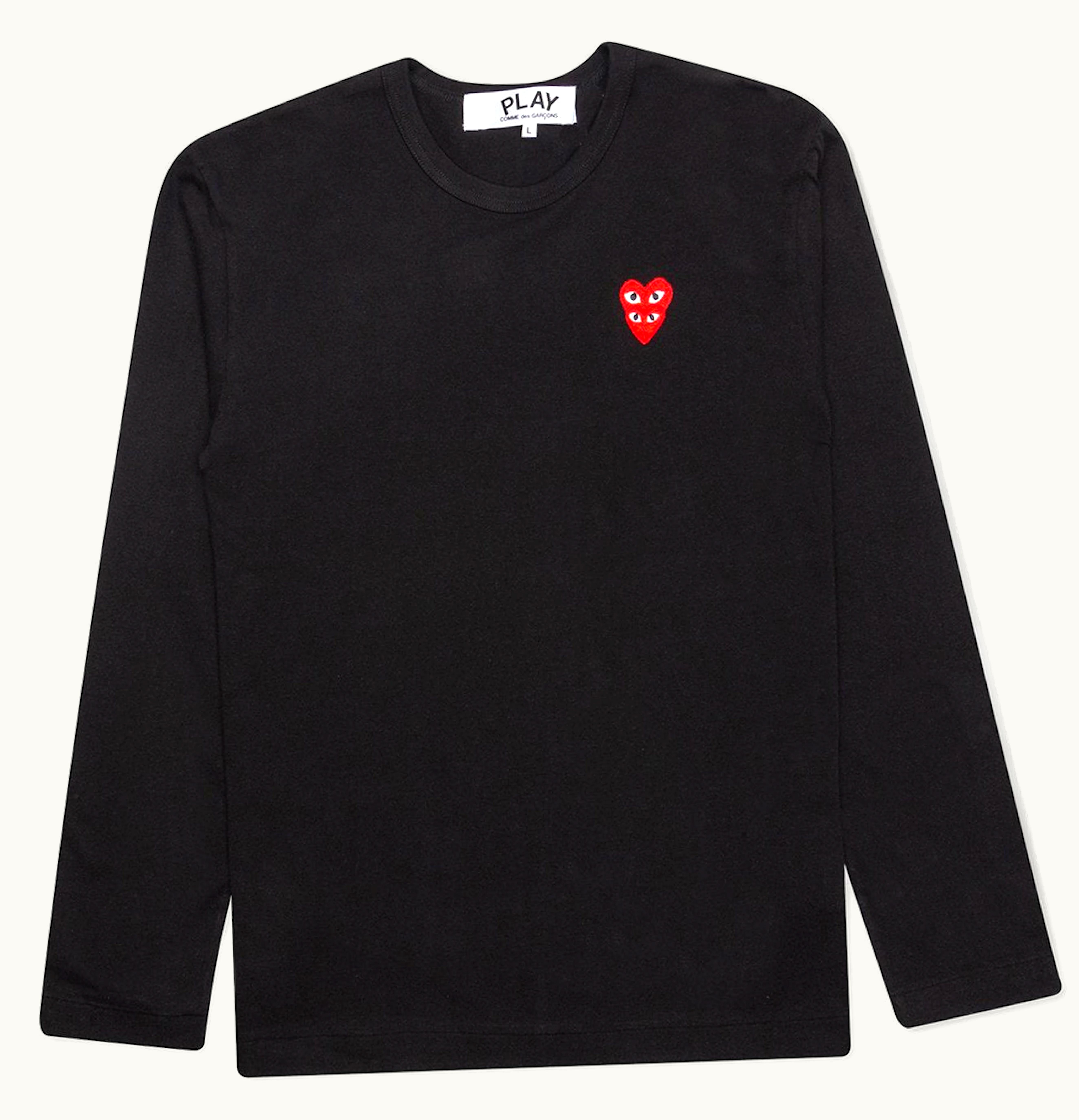 Comme des Garcons PLAY Womens Red Stacked Heart L S T shirt Black | GLINT