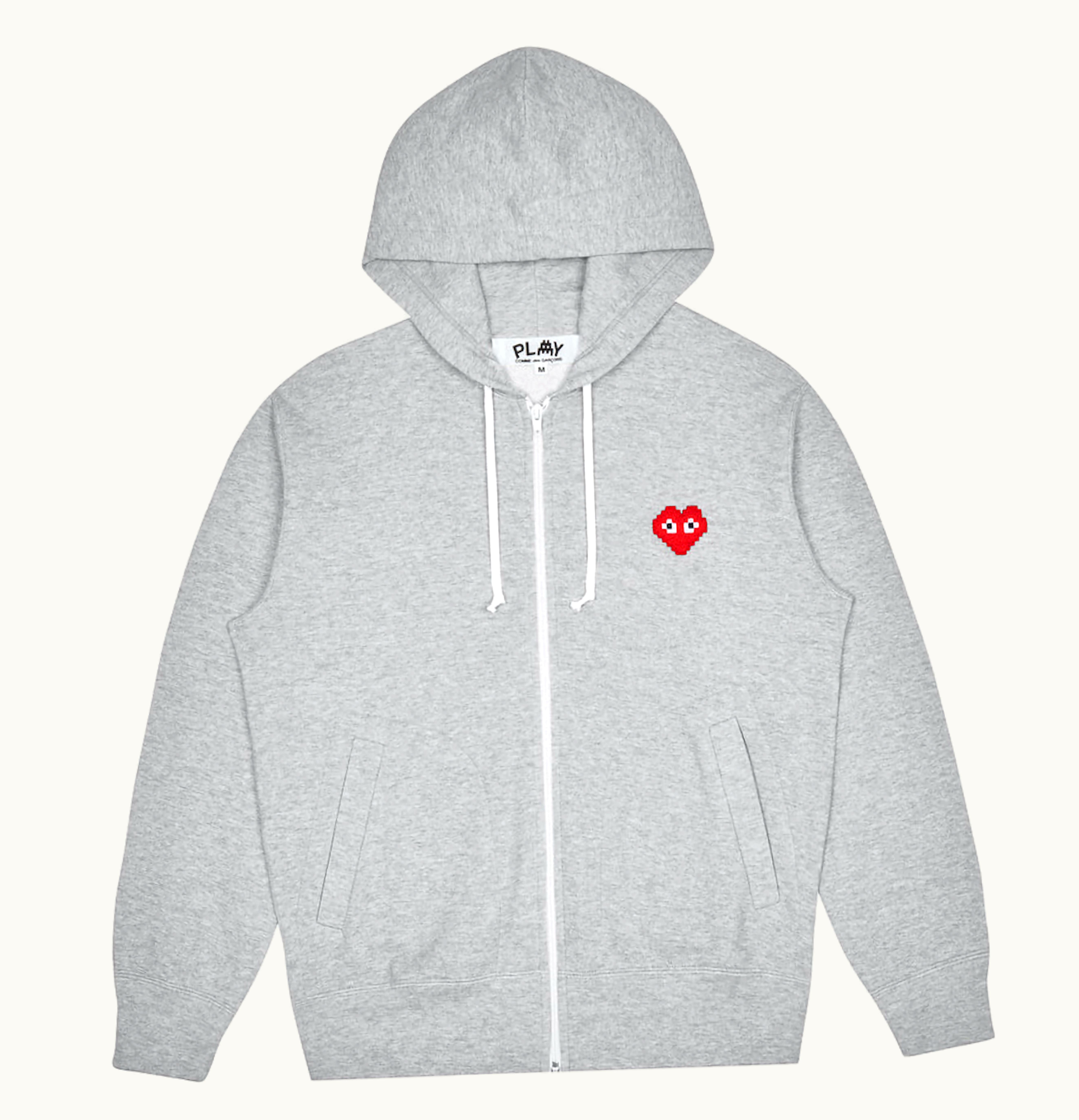 Comme des Garcons PLAY x Invader Womens Zip Up Hoodie Top Grey | GLINT