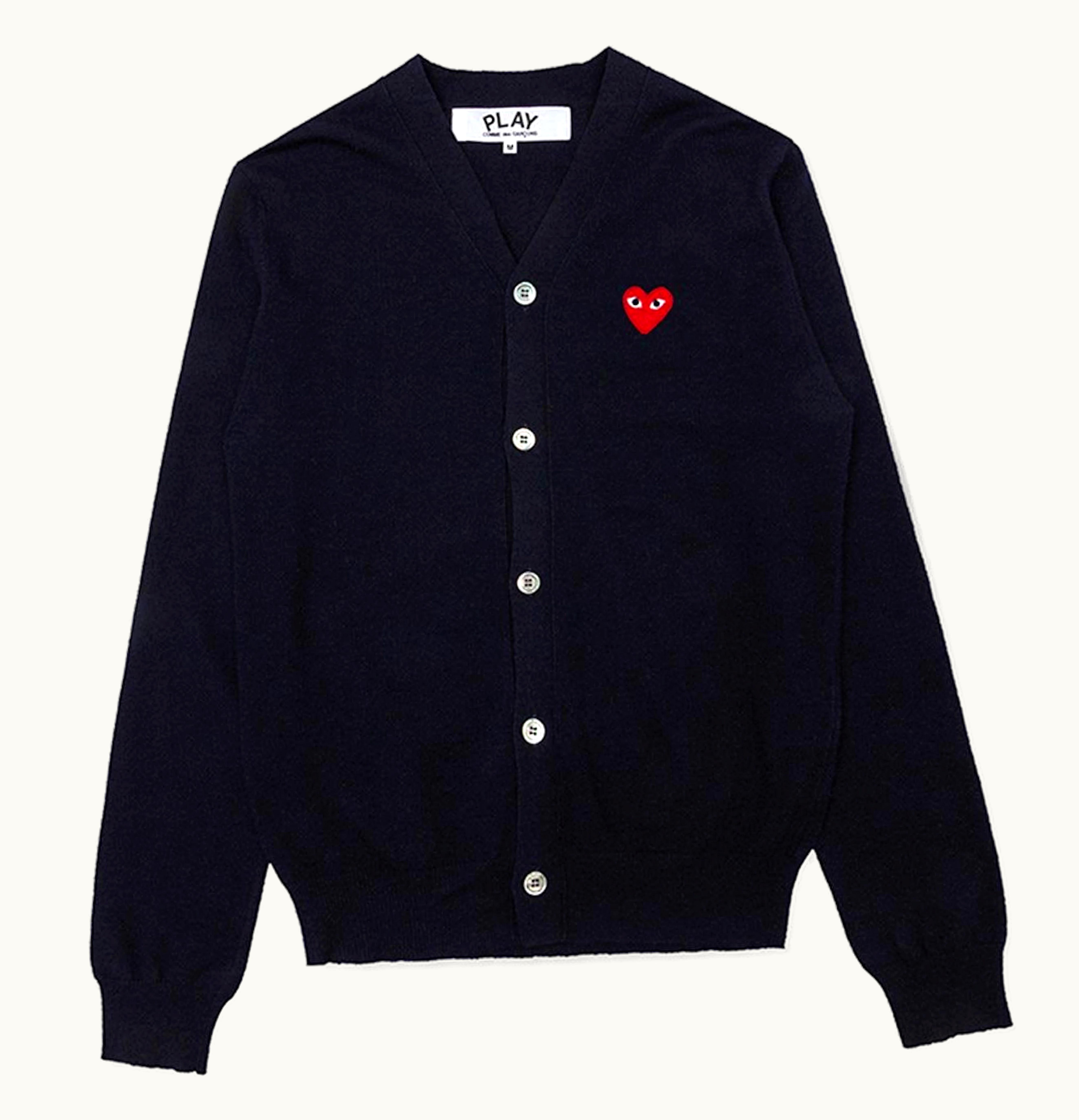 Comme des Garcons PLAY Red Heart Knit Cardigan Sweater Navy | GLINT