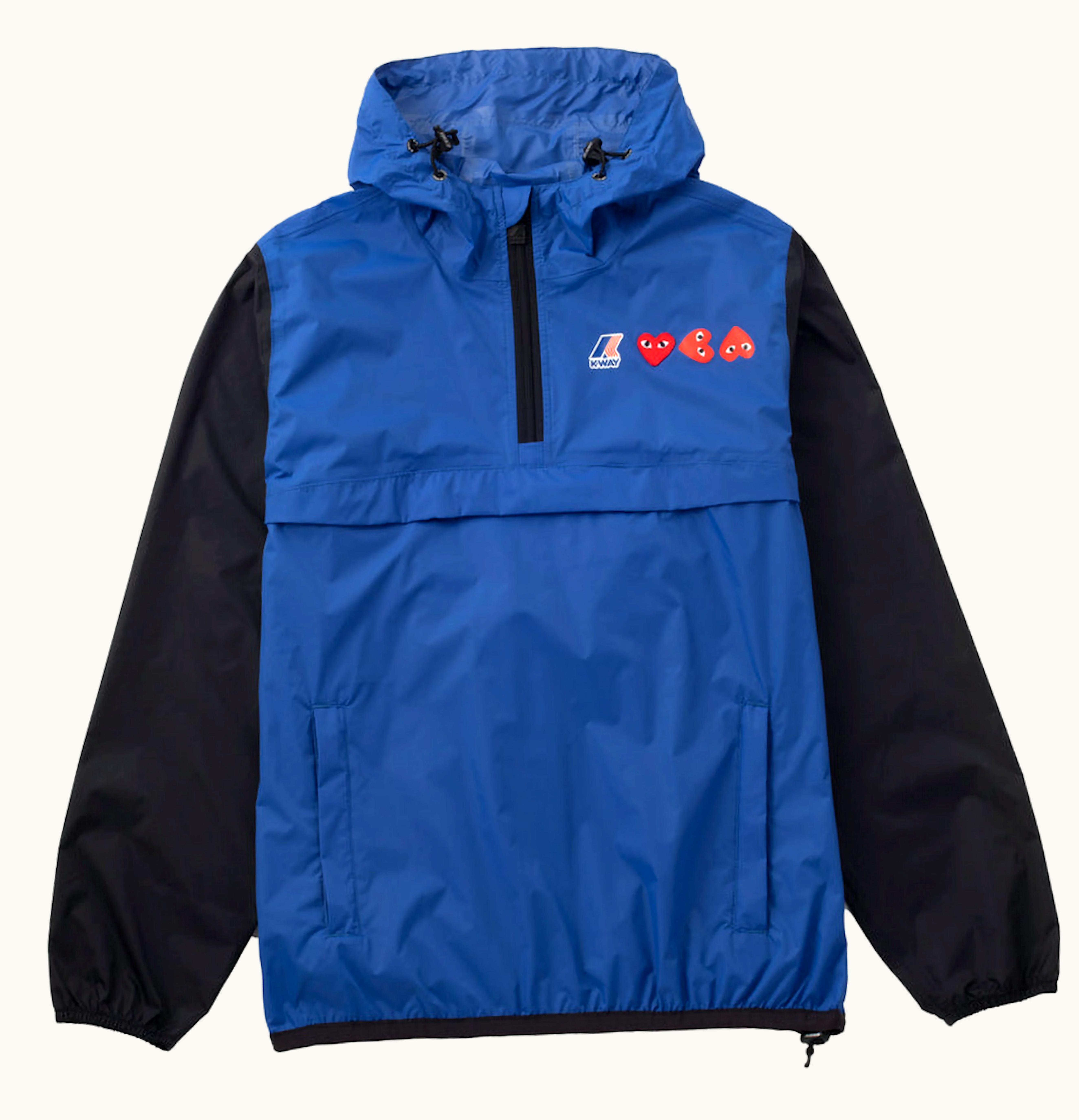 CDG Play x K Way Logos Half Zip Jacket Blue Black | GLINT