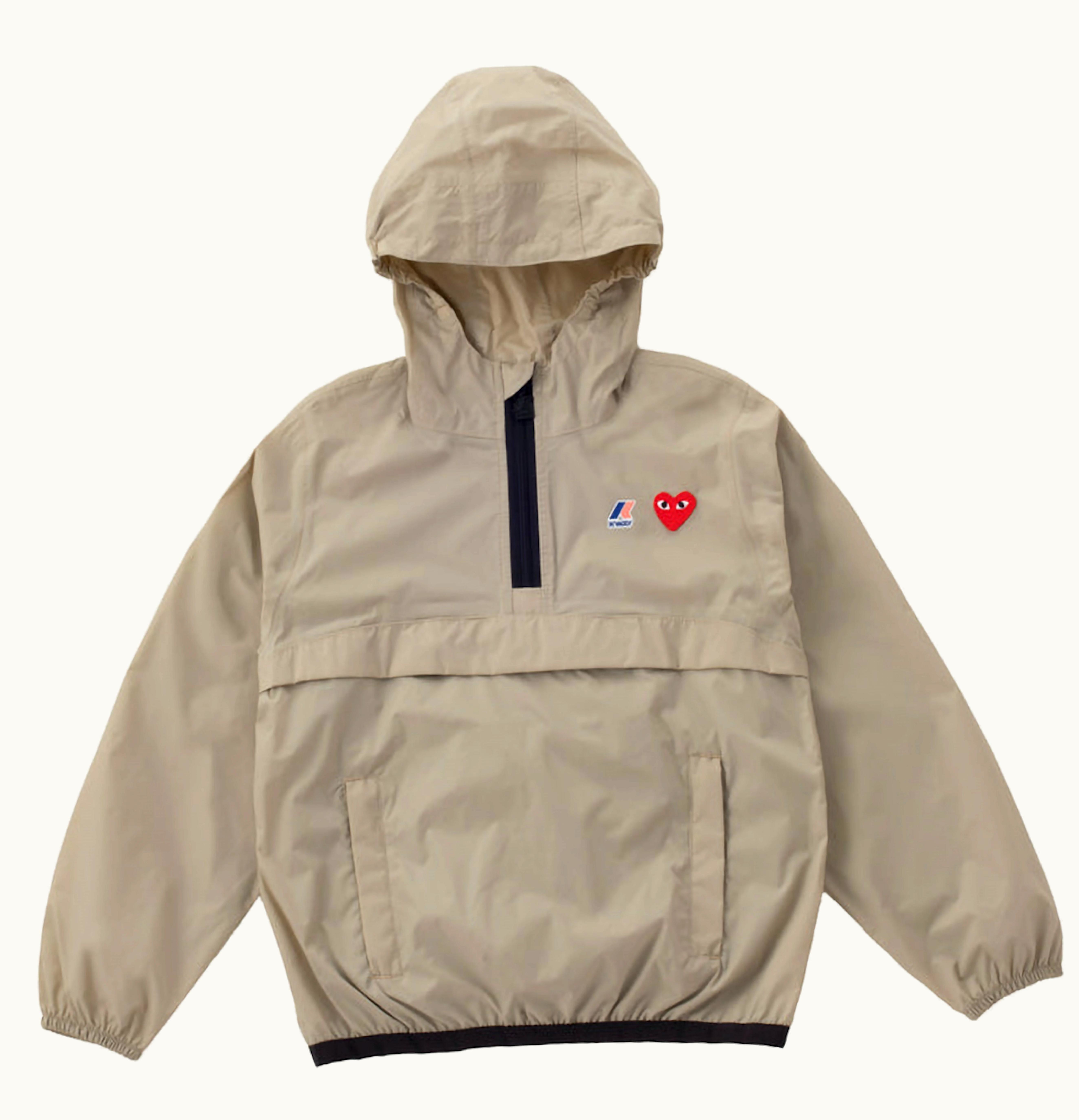 CDG Play x K Way Kids Half Zip Jacket Beige | GLINT