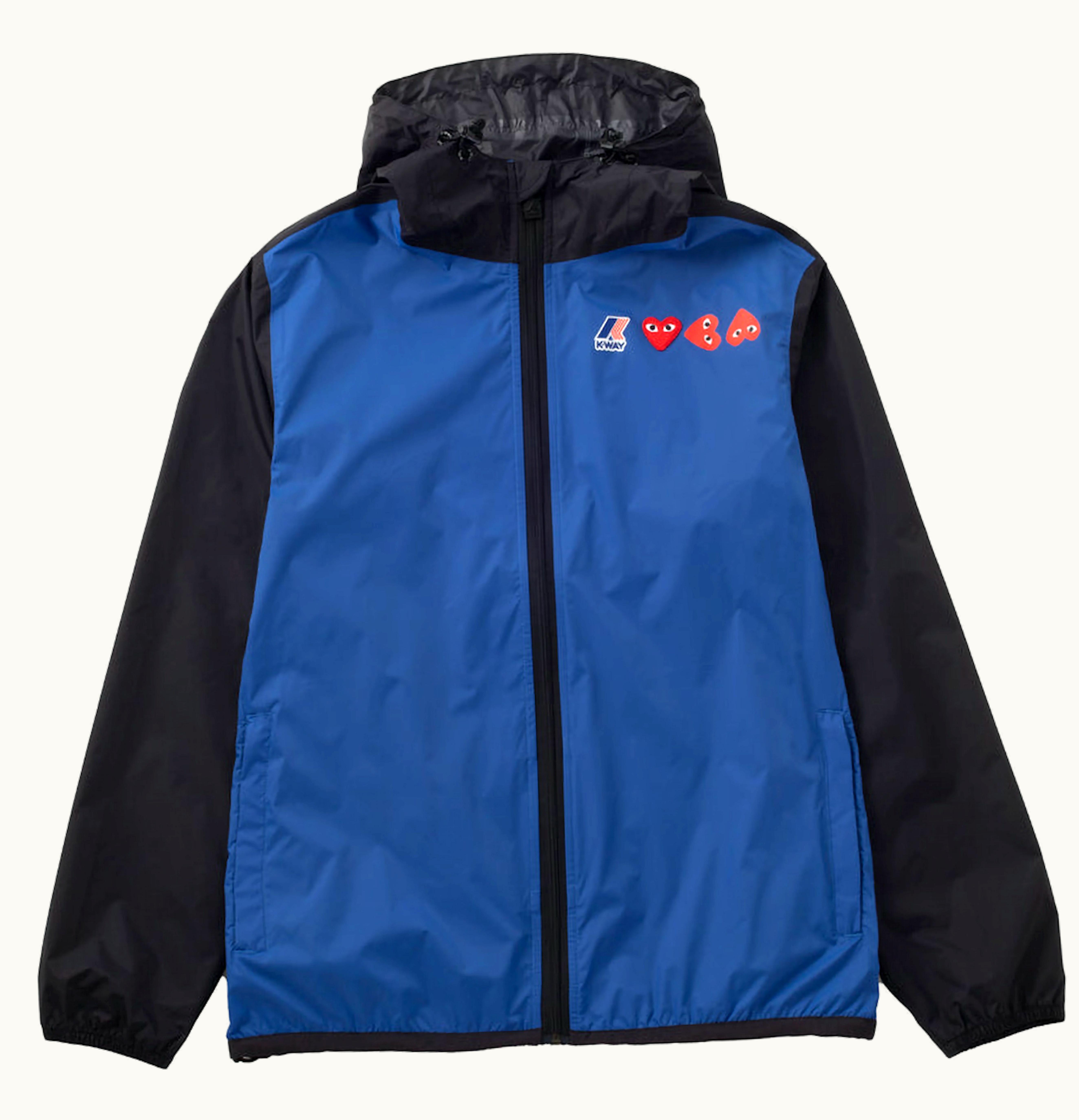 CDG Play x K Way Logos Full Zip Jacket Blue Black | GLINT