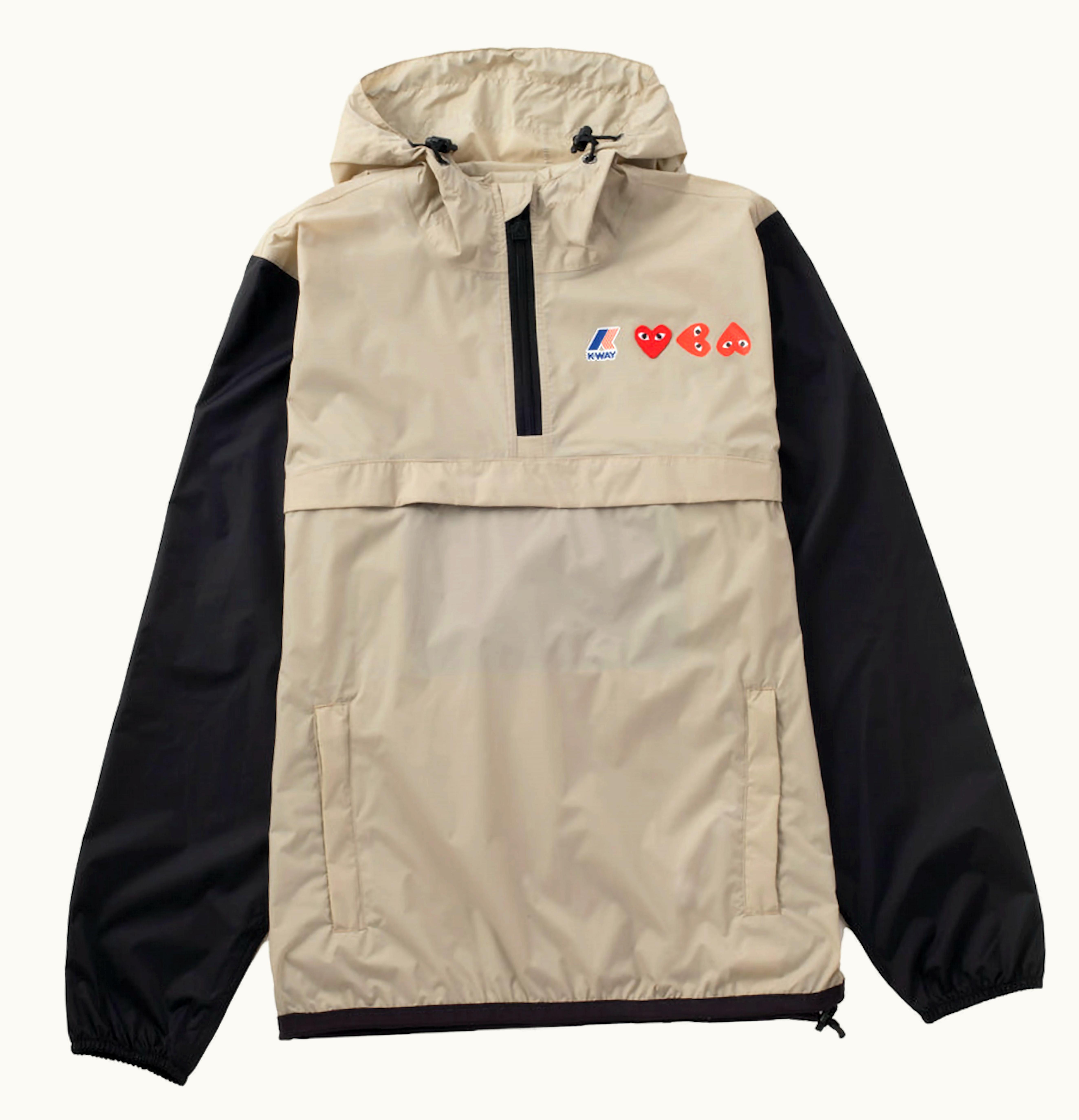 CDG Play x K Way Logos Half Zip Jacket Beige Black | GLINT