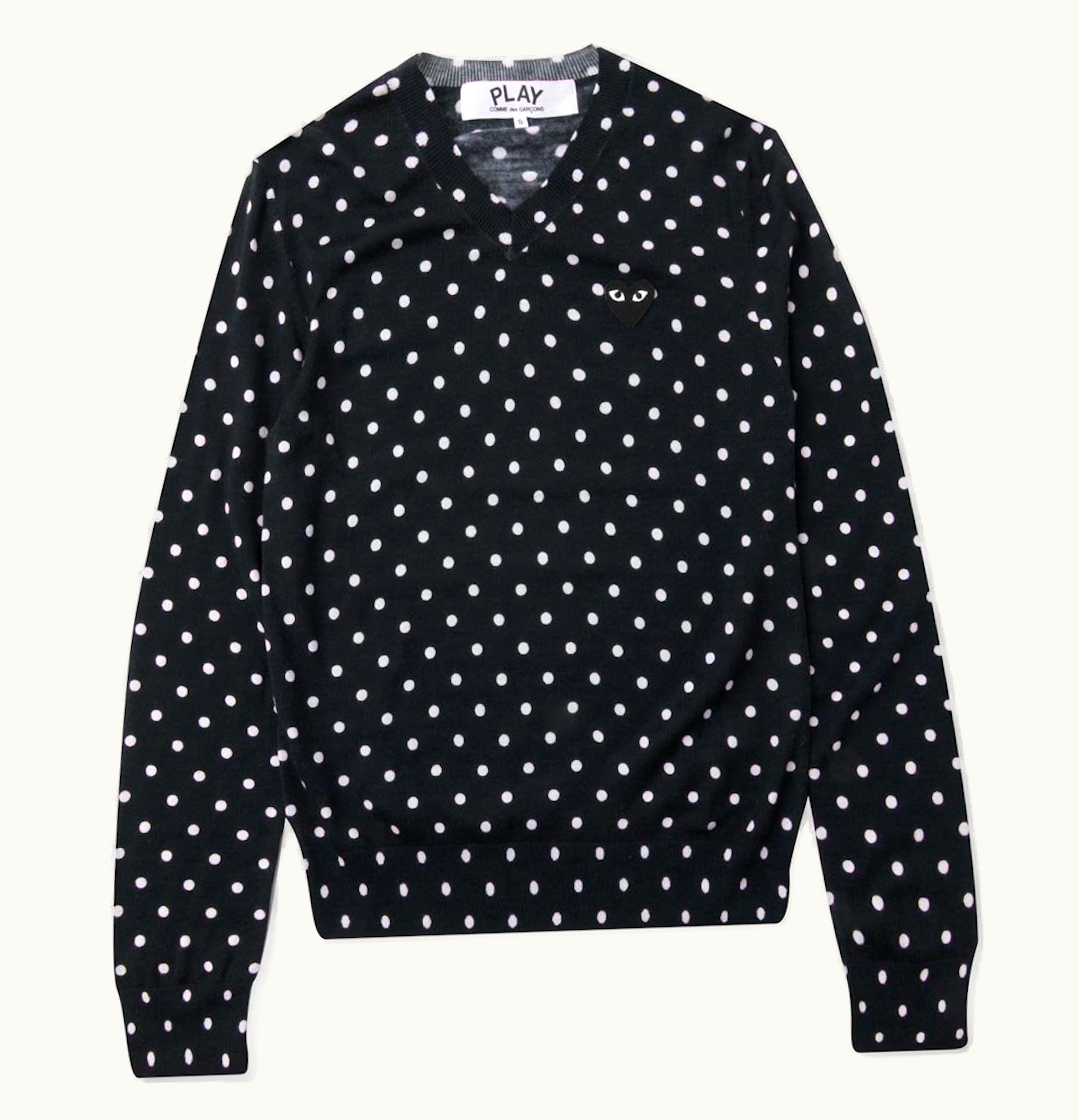 Comme des Garcons PLAY Womens Polka Dot V Neck Sweater Navy | GLINT